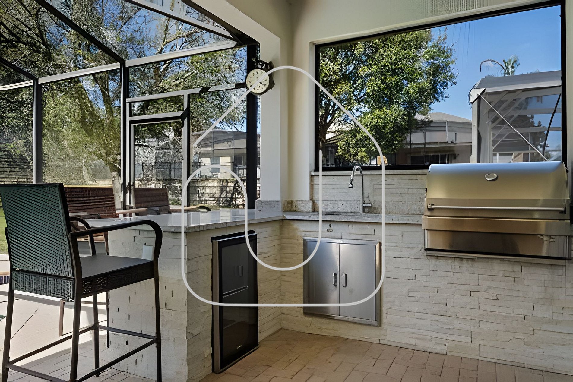 Aproveite o melhor da Flórida em sua piscina privativa com espreguiçadeiras, mesa externa coberta para 6 pessoas e uma Summer Kitchen com churrasqueira a carvão e cooler de bebidas.