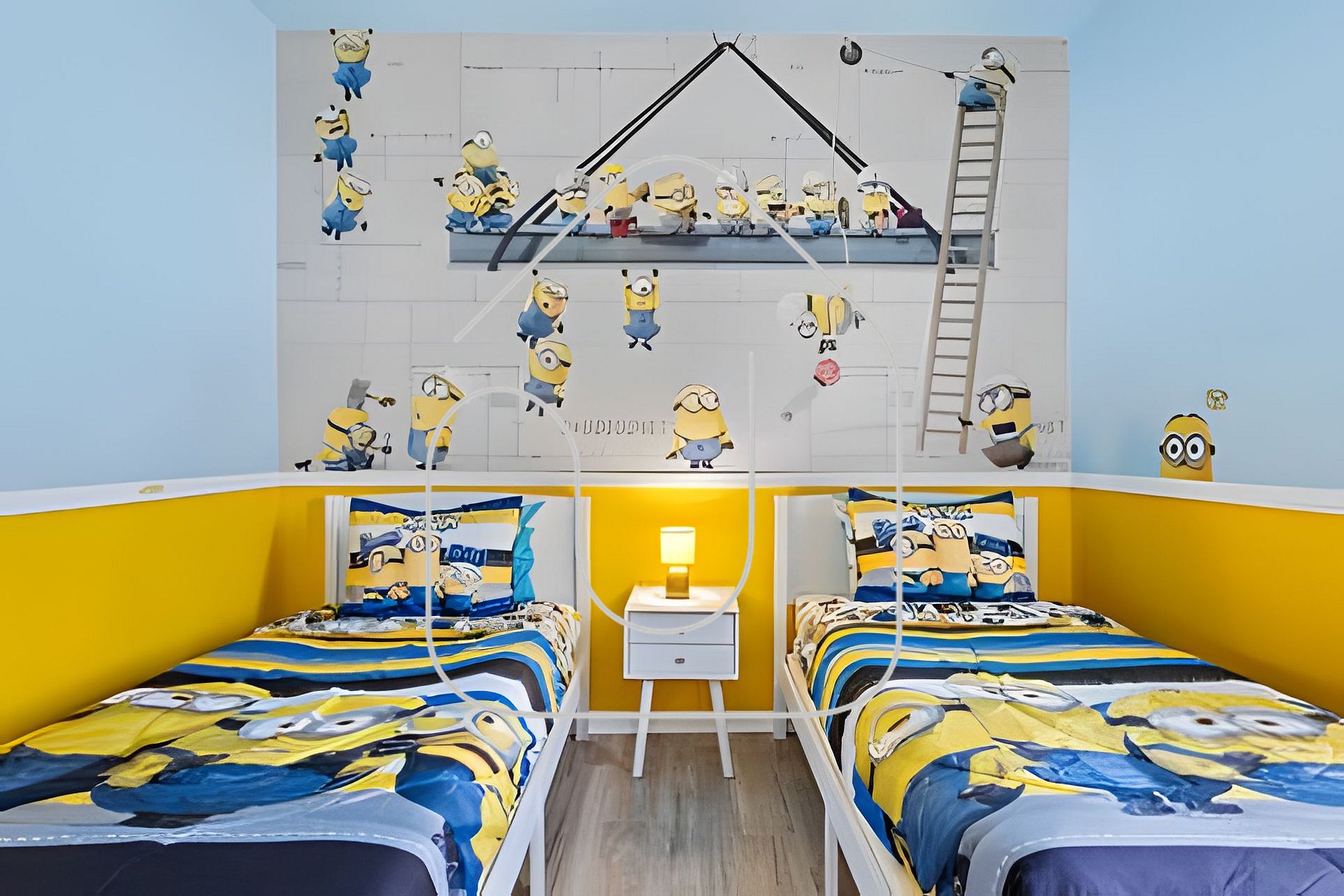 Quarto 2: Este quarto aconchegante apresenta uma cama Queen, ideal para convidados ou familiares. Quarto 3 - Tema Minions: As crianças adorarão o quarto temático dos Minions, com um beliche (Twin/Twin) e uma cama extra Twin. Um espaço perfeito para diversão e relaxamento.