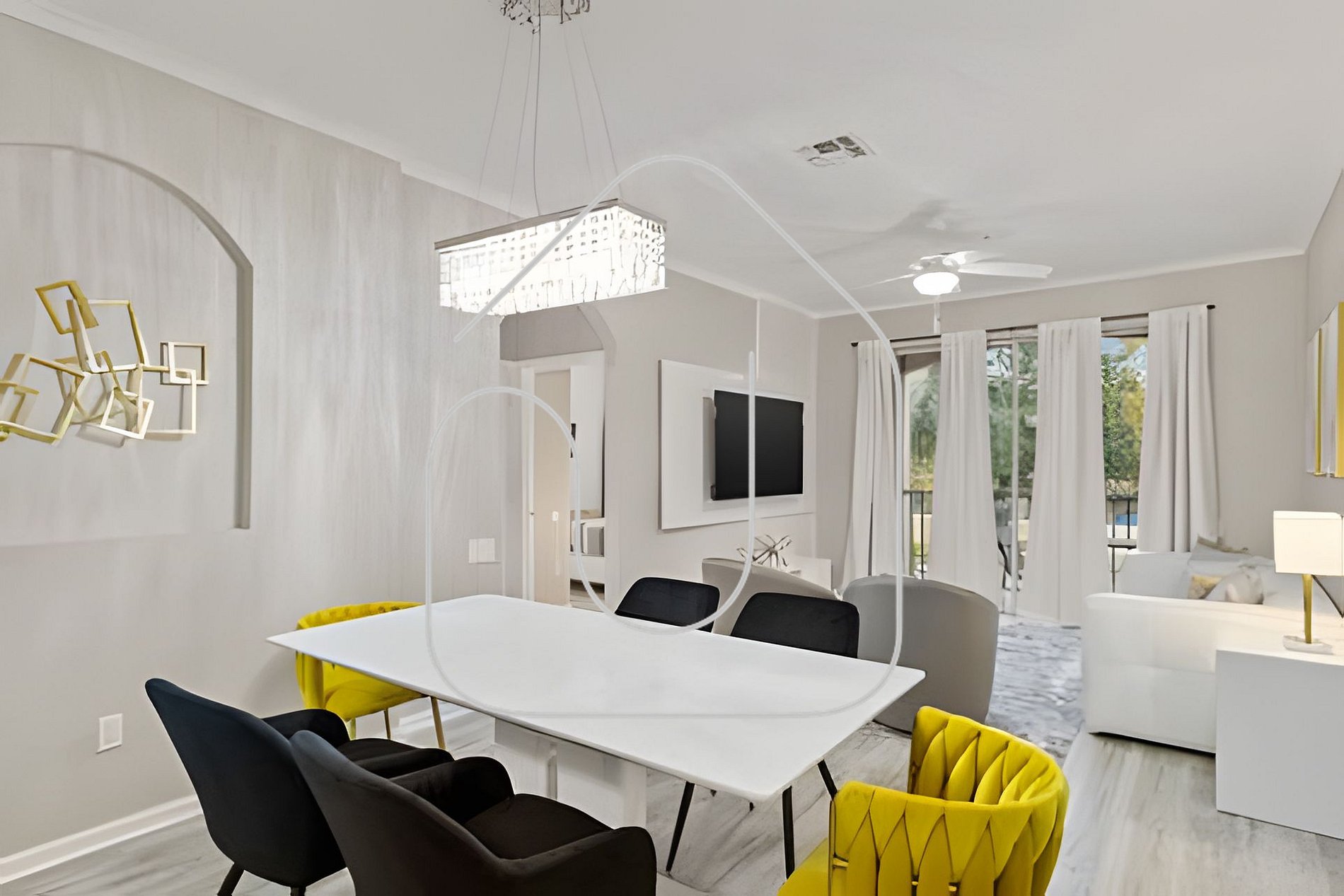Sala de Estar: Um espaço relaxante com assentos confortáveis e TV de tela plana, perfeito para noites de cinema em família ou para relaxar após um dia nos parques. Cozinha: Prepare suas refeições favoritas na cozinha totalmente equipada, com eletrodomésticos modernos, utensílios e panelas. Ideal para saborear pratos caseiros ou cafés da manhã rápidos antes de sair.