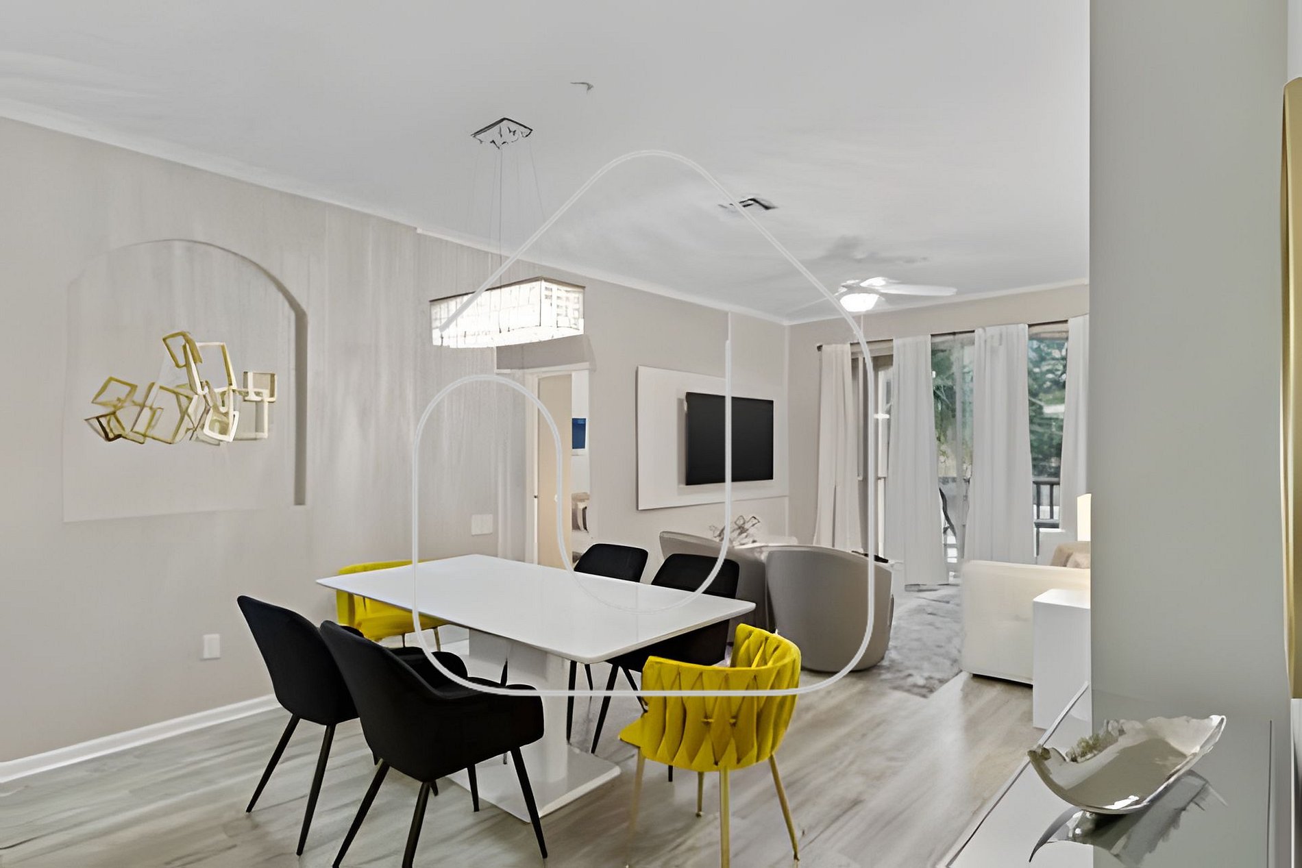 Área de Jantar: Reúna-se em torno da mesa de jantar que acomoda seis pessoas, perfeita para refeições, noites de jogos ou para planejar sua próxima aventura.