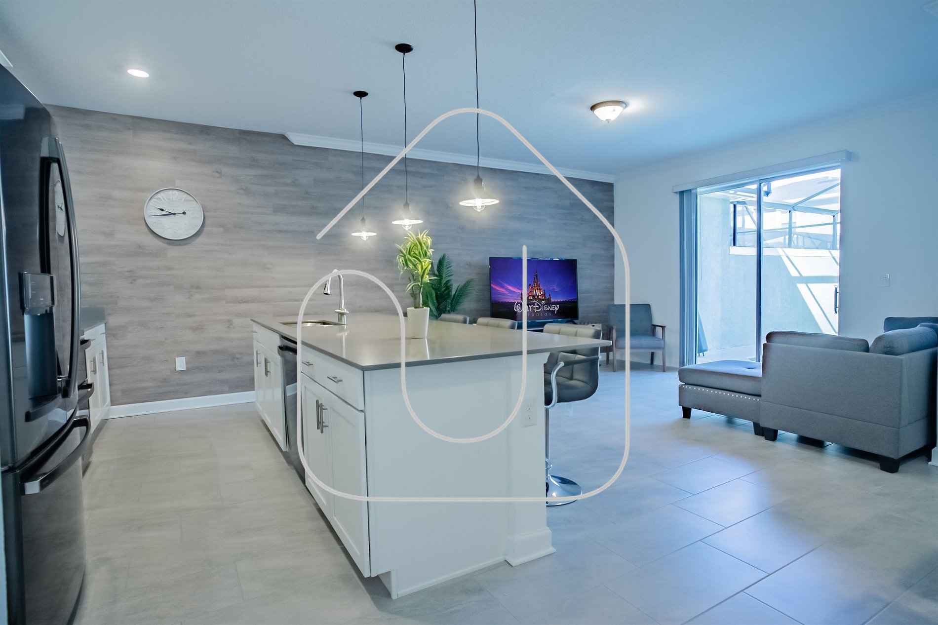 Esta luxuosa townhouse de dois andares em Storey Lake Resort oferece o equilíbrio perfeito entre conforto e conveniência. A casa possui 4 quartos e 3 banheiros, incluindo uma suíte master com cama king-size e banheiro privativo. No andar térreo, você encontrará uma espaçosa área de estar com um sofá de 5 lugares e uma TV SMART de 65 polegadas, além de uma cozinha totalmente equipada para refeições caseiras. A área de jantar acomoda até 12 pessoas (8 na mesa e 4 no balcão), ideal para refeições em família.