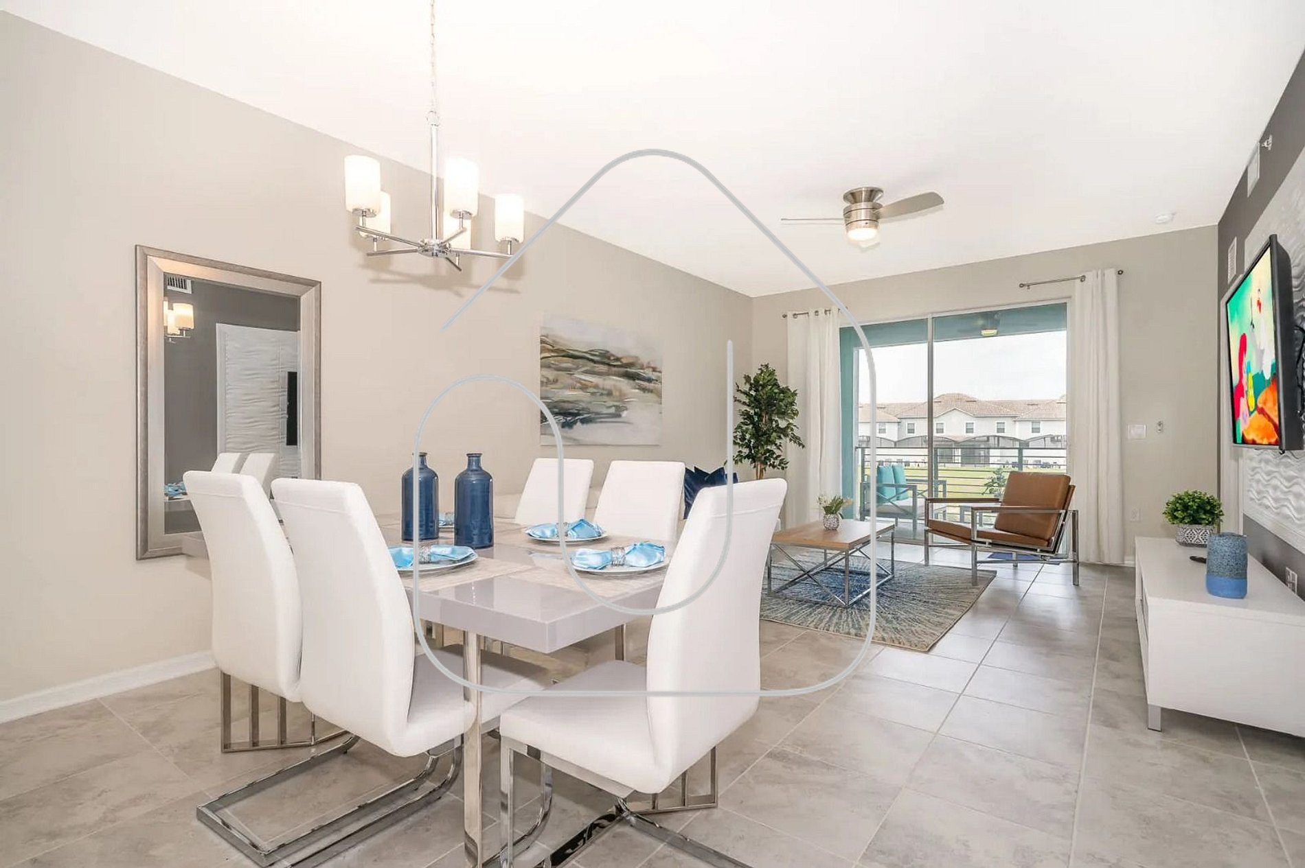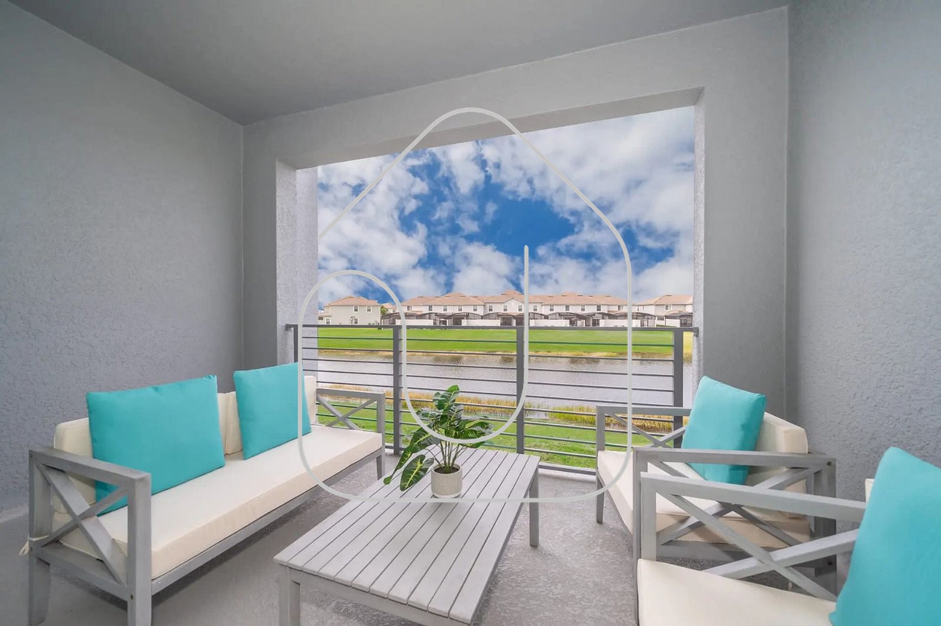 Desfrute do clima de Orlando na sua varanda privativa, um espaço perfeito para relaxar e aproveitar a brisa da noite.
