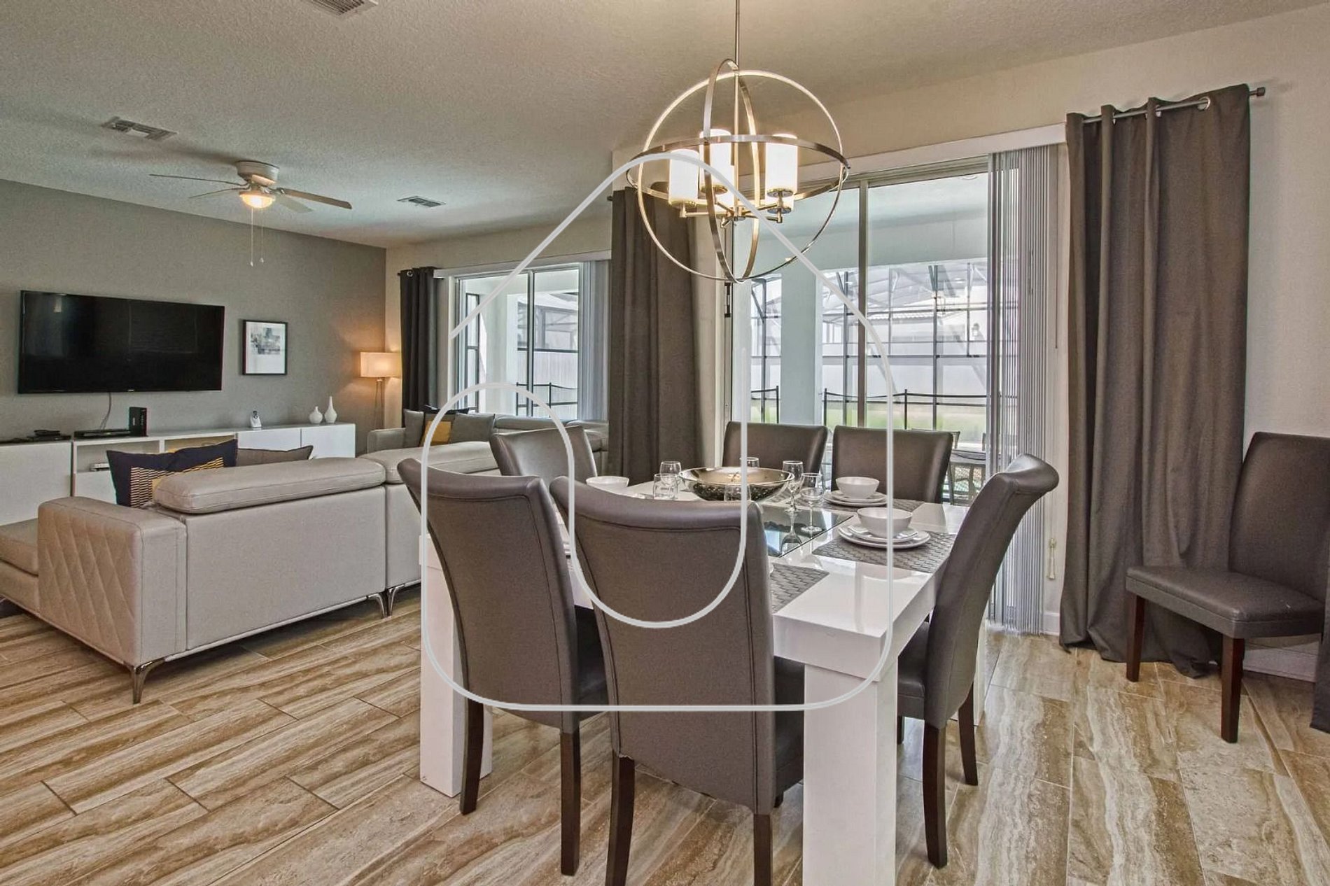 Esta propriedade é ideal para grupos que buscam uma base confortável e conveniente, próxima às principais atrações de Orlando, desfrutando de comodidades de resort e privacidade.