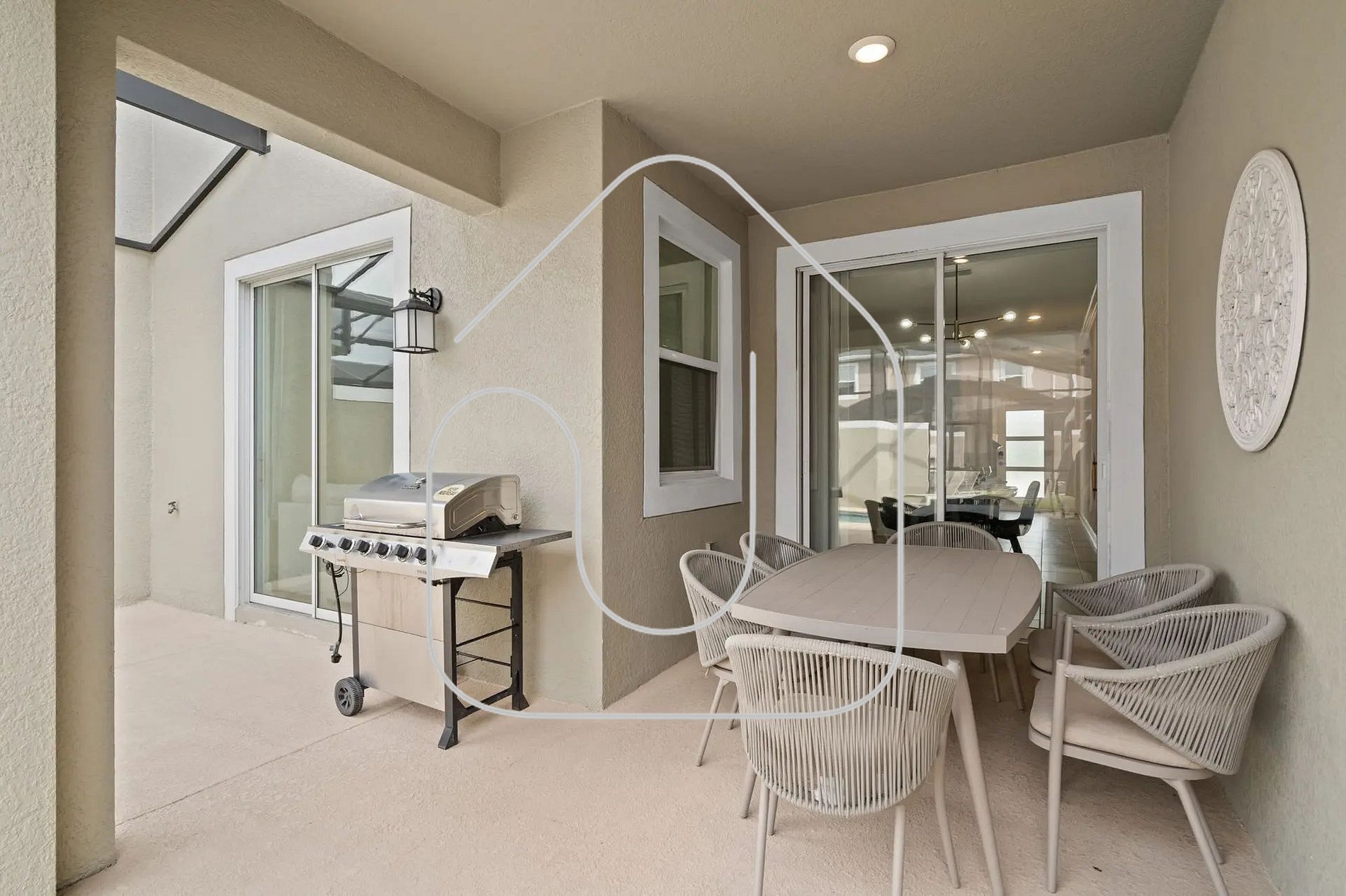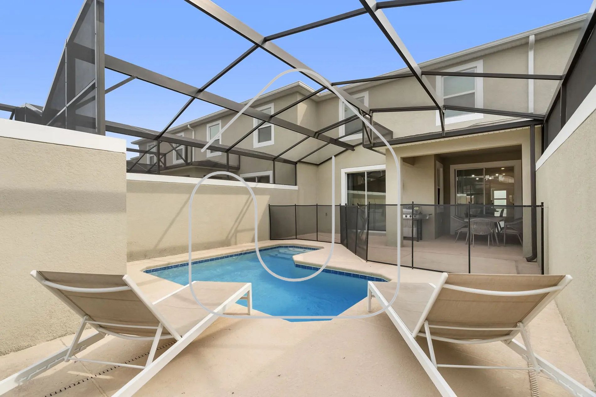 Na área externa, o pátio privativo com piscina é ideal para aproveitar os dias ensolarados da Flórida ou relaxar à noite. Há também uma churrasqueira (BBQ) disponível para refeições ao ar livre.