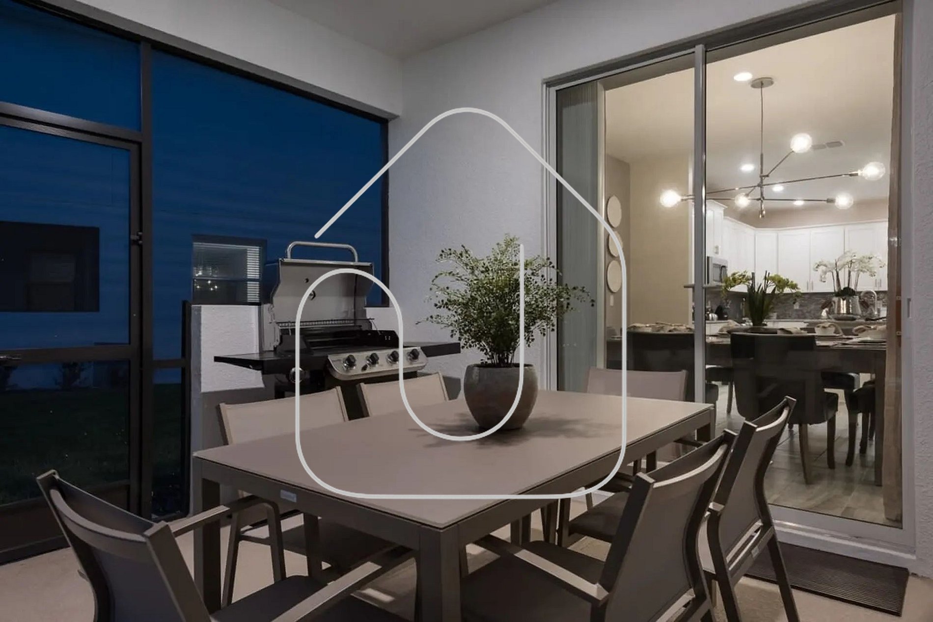 Do lado de fora, aproveite sua piscina privativa aquecível, equipada com espreguiçadeiras e área coberta com mesa de jantar externa—perfeita para refeições ao ar livre ou um drink no fim da tarde. O espaço externo é ideal para curtir com a família ou relaxar depois de um dia nos parques.