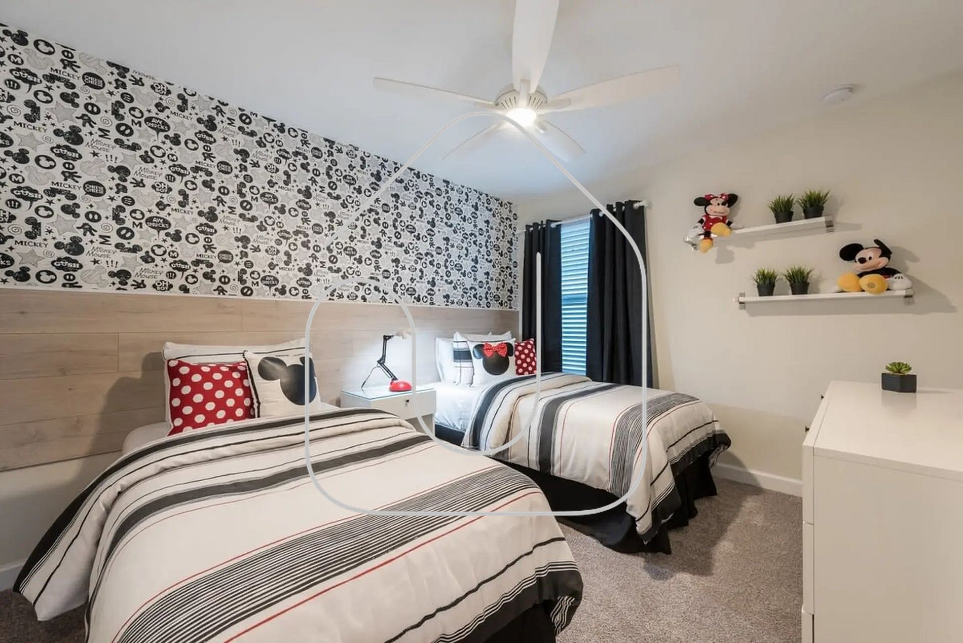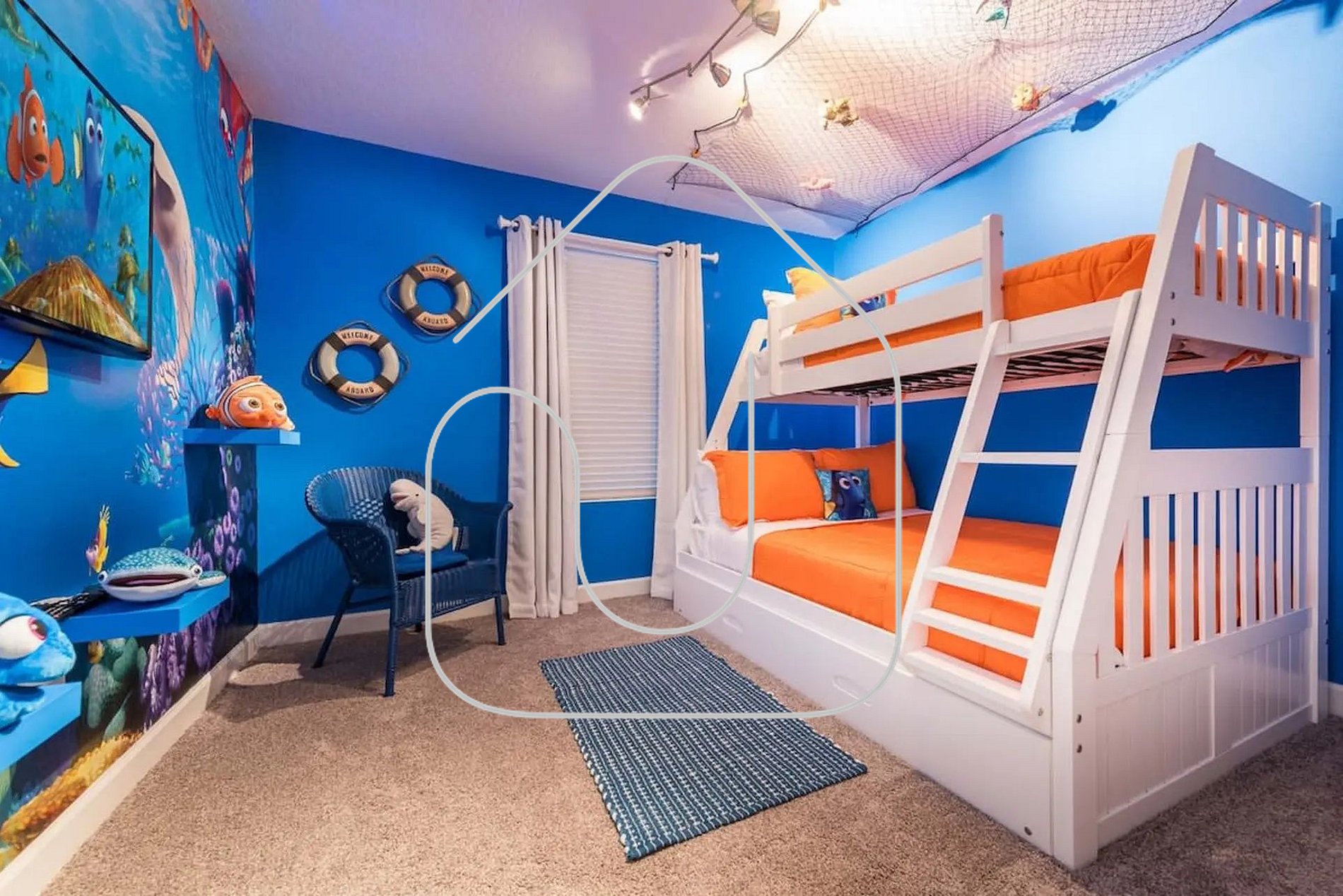 A decoração combina sofisticação com um toque divertido e acolhedor. As crianças vão se encantar com os dois quartos temáticos, inspirados nos personagens Mickey e Nemo, pensados para tornar a experiência ainda mais mágica. Os adultos, por sua vez, podem desfrutar de três suítes com camas king size, oferecendo privacidade, conforto e banheiros privativos estilo hotel.