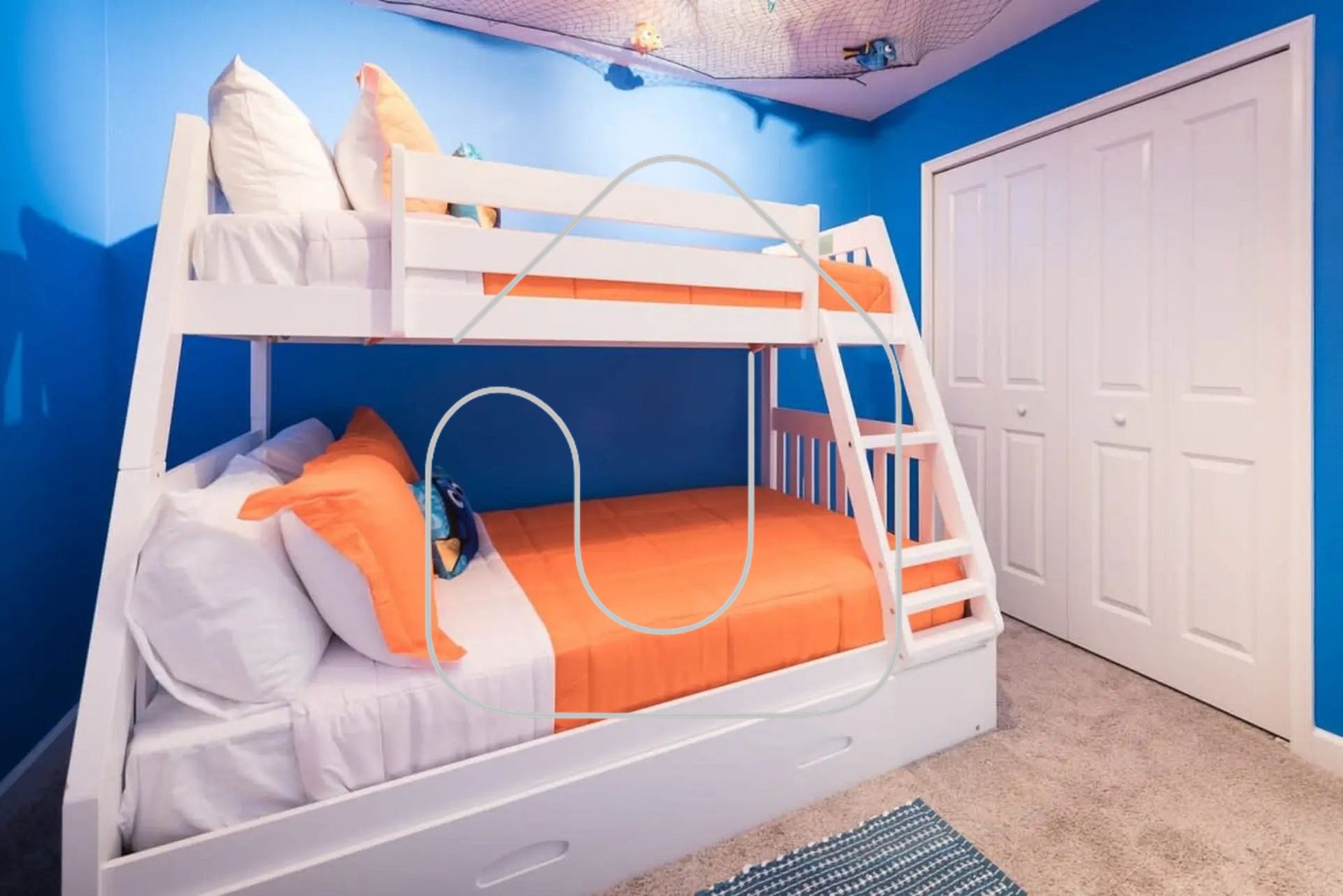 Desfrute do luxo em nossa casa de 6 quartos e 5 banheiros no Storey Lake Resort, a poucos minutos da Disney. Para até 13 pessoas, com piscina aquecida privativa, quartos temáticos (Mickey & Nemo), game room, Wi‑Fi gratuito, lavanderia, cozinha completa e acesso a restaurantes, lojas e área de resort com rio lento, bar tiki e piscina pirata. Aquecimento da piscina e churrasco com custo extra. Perfeito para famílias!