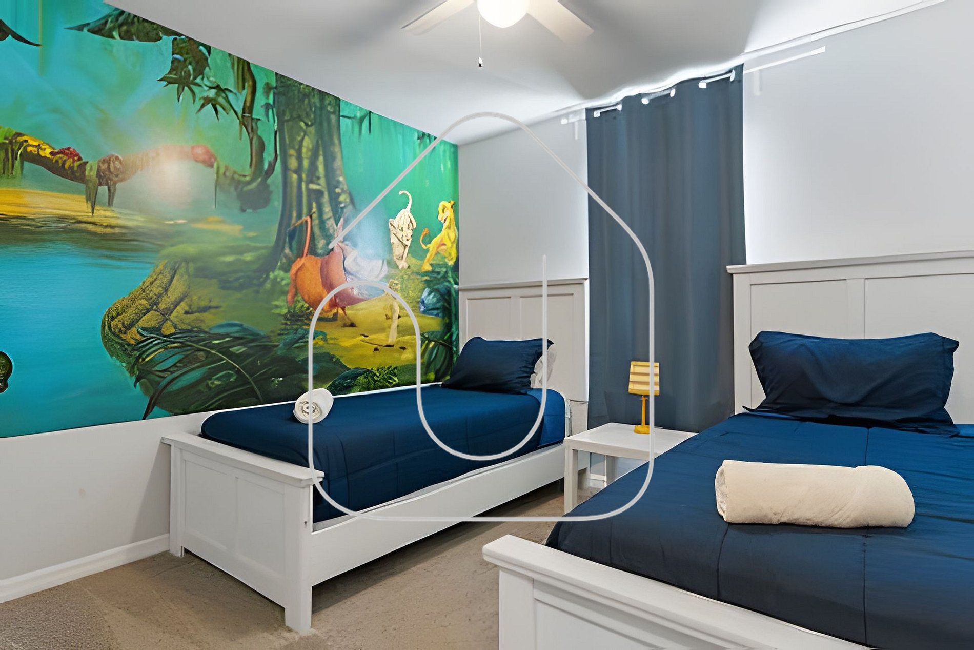 This spacious and cozy 4-bedroom home, just minutes from Disney, is perfect for family getaways. Located in a secure gated community, guests can enjoy a clubhouse with a pool, jacuzzi, and more. With comfortable rooms and a fully equipped kitchen, it’s the ideal retreat for creating lasting family memories. Many restaurants and grocery stores nearby.
