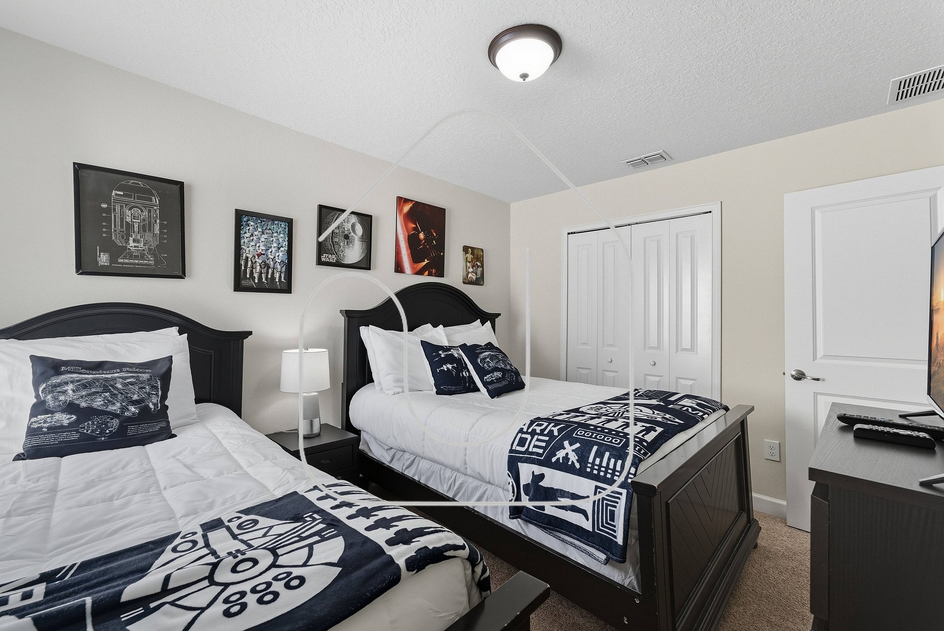 Quarto Star Wars: 1 Cama Twin + 1 Cama Full (banheiro compartilhado).