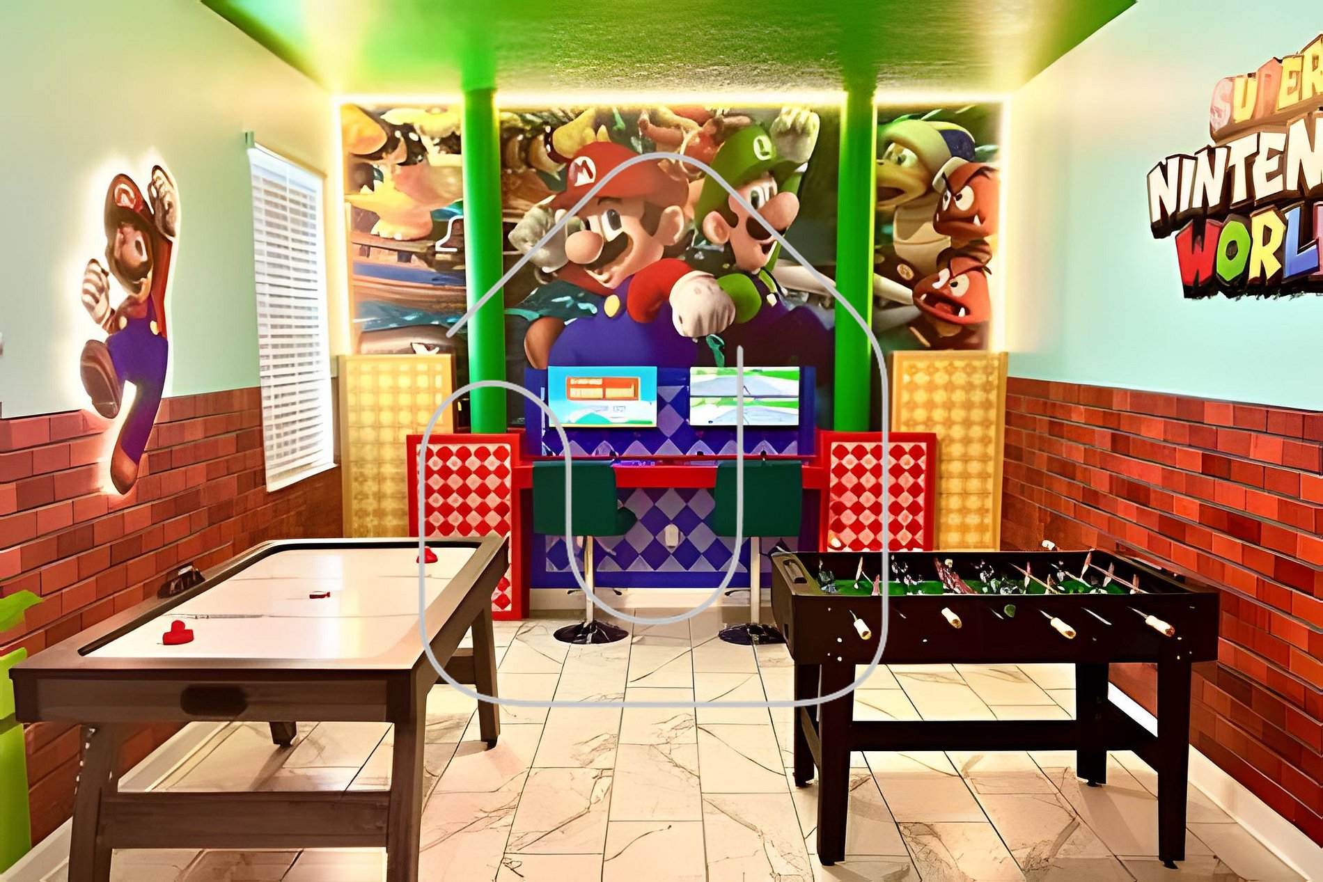 Casa espaçosa com 6 quartos no Champions Gate, piscina privativa aquecida, game room do Mario Bros e sala no segundo andar. Ideal para famílias! Acesso ao resort completo, a 20 min da Disney. Wi-Fi grátis, churrasqueira opcional e suporte 24h.