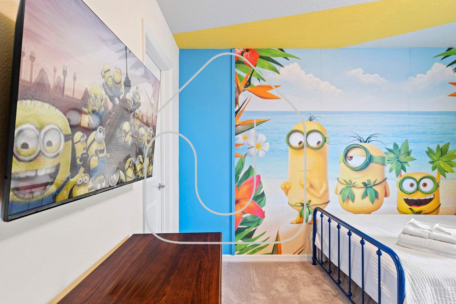 Viva o conforto e design moderno nesta casa de 7 quartos para até 15 hóspedes no Windsor Cay Resort. Espaços amplos incluem sala de estar integrada à cozinha, pátio com piscina privativa aquecida e ambientes temáticos como Mario Bros, Mickey, Minions, Princess e Toy Story. Com 3 suítes elegantes e áreas pensadas para diversão em família, este refúgio proporciona uma experiência memorável perto dos parques de Orlando. Wi‑Fi gratuito, estacionamento e kit de boas‑vindas inclusos.