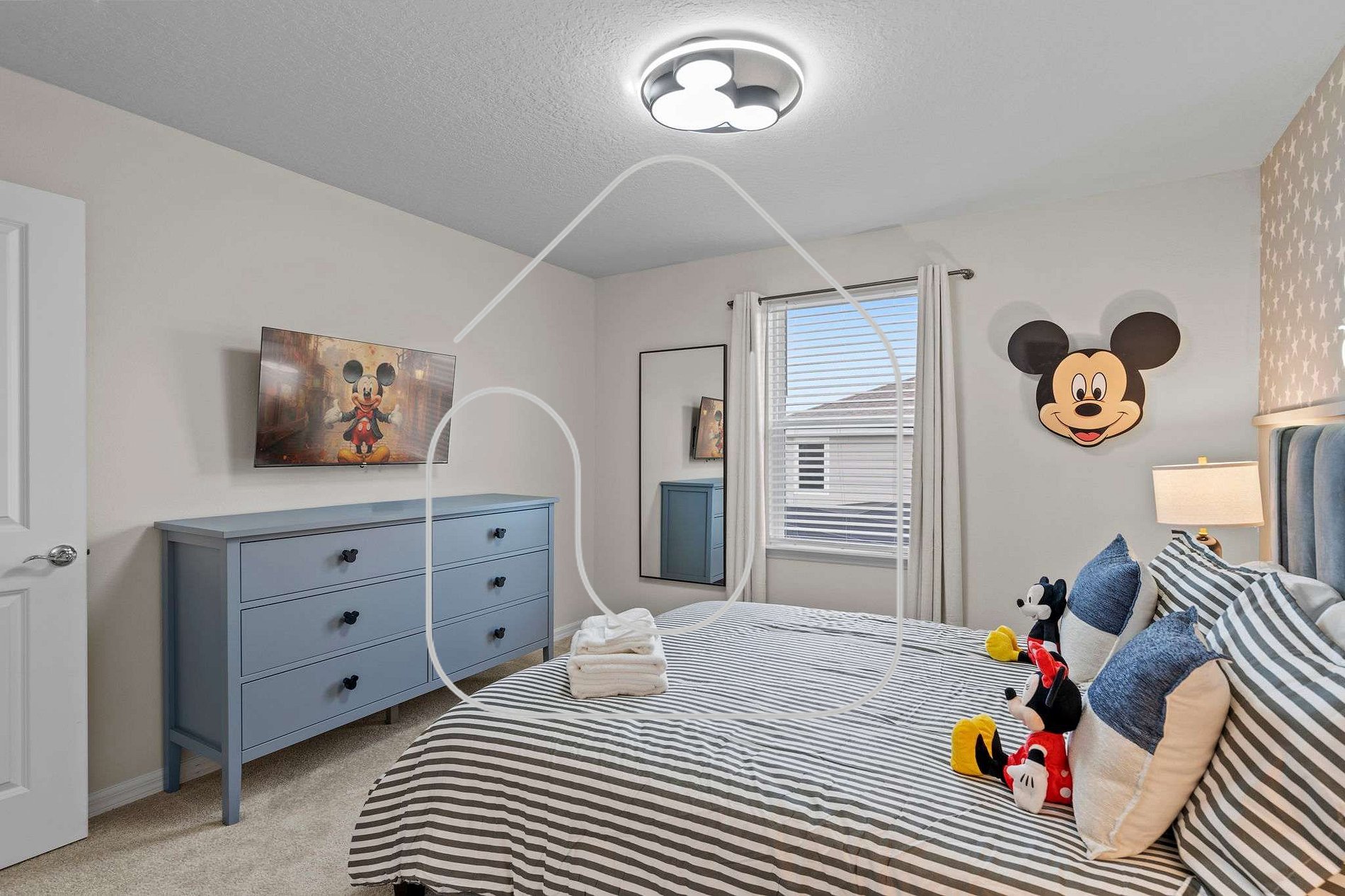 • Quarto Mickey com cama queen compartilhando banheiro com quarto Minions (cama dupla e cama de solteiro)