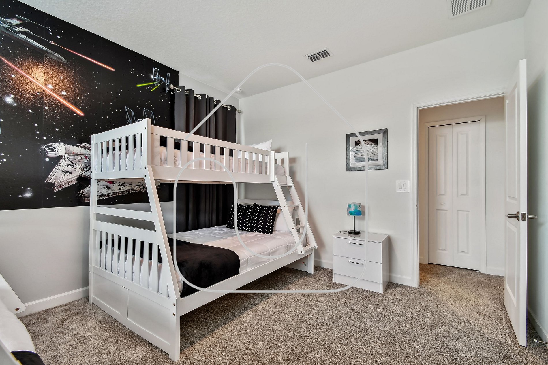 Quarto Star Wars - 2 beliches twin sobre casal com banheiro compartilhado, SMART TV.