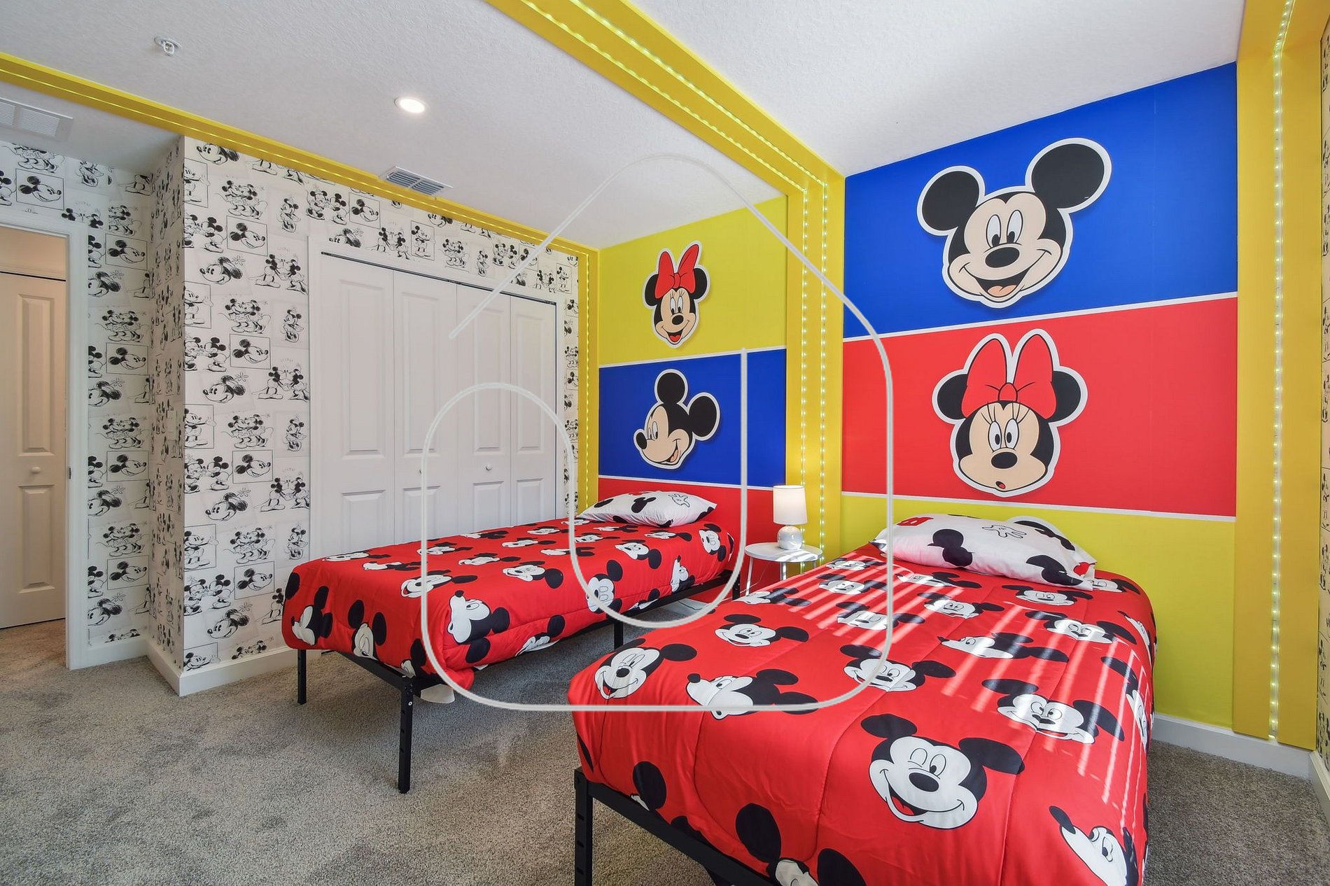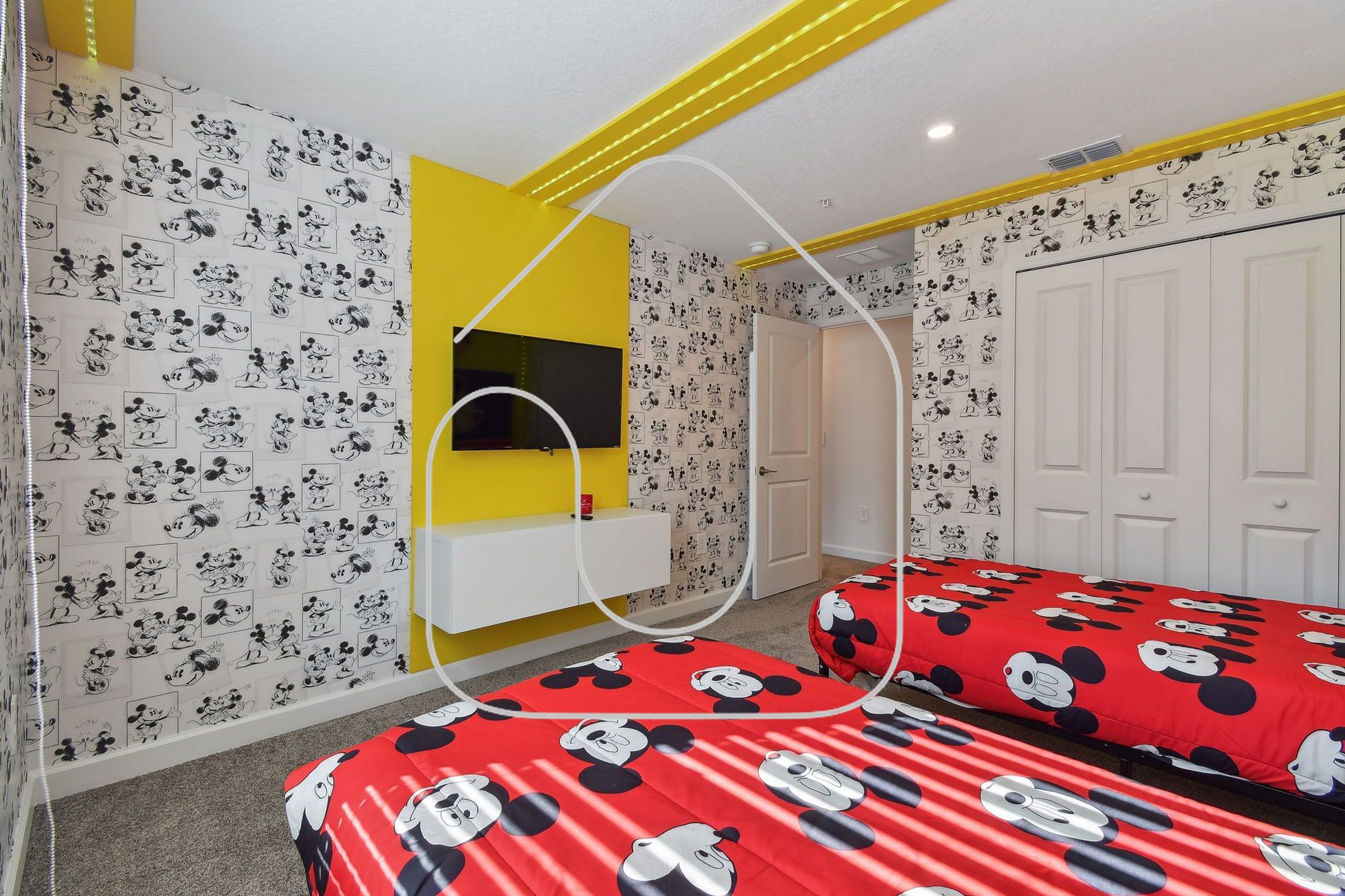 Quarto Mickey Mouse - 2 camas de solteiro, TV SMART compartilhando banheiro completo