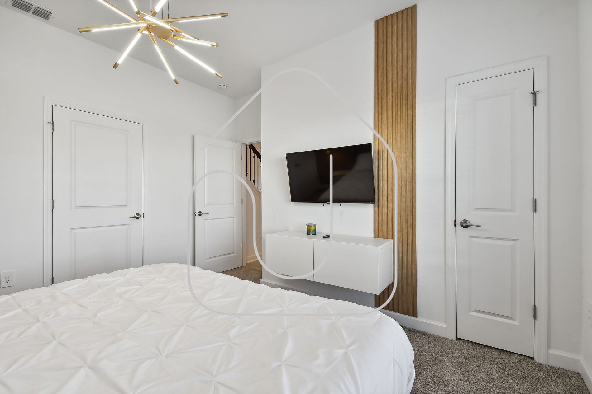Suíte Master 1 - Cama King size, TV SMART de 50 polegadas, closet e banheiro privativo com chuveiro.