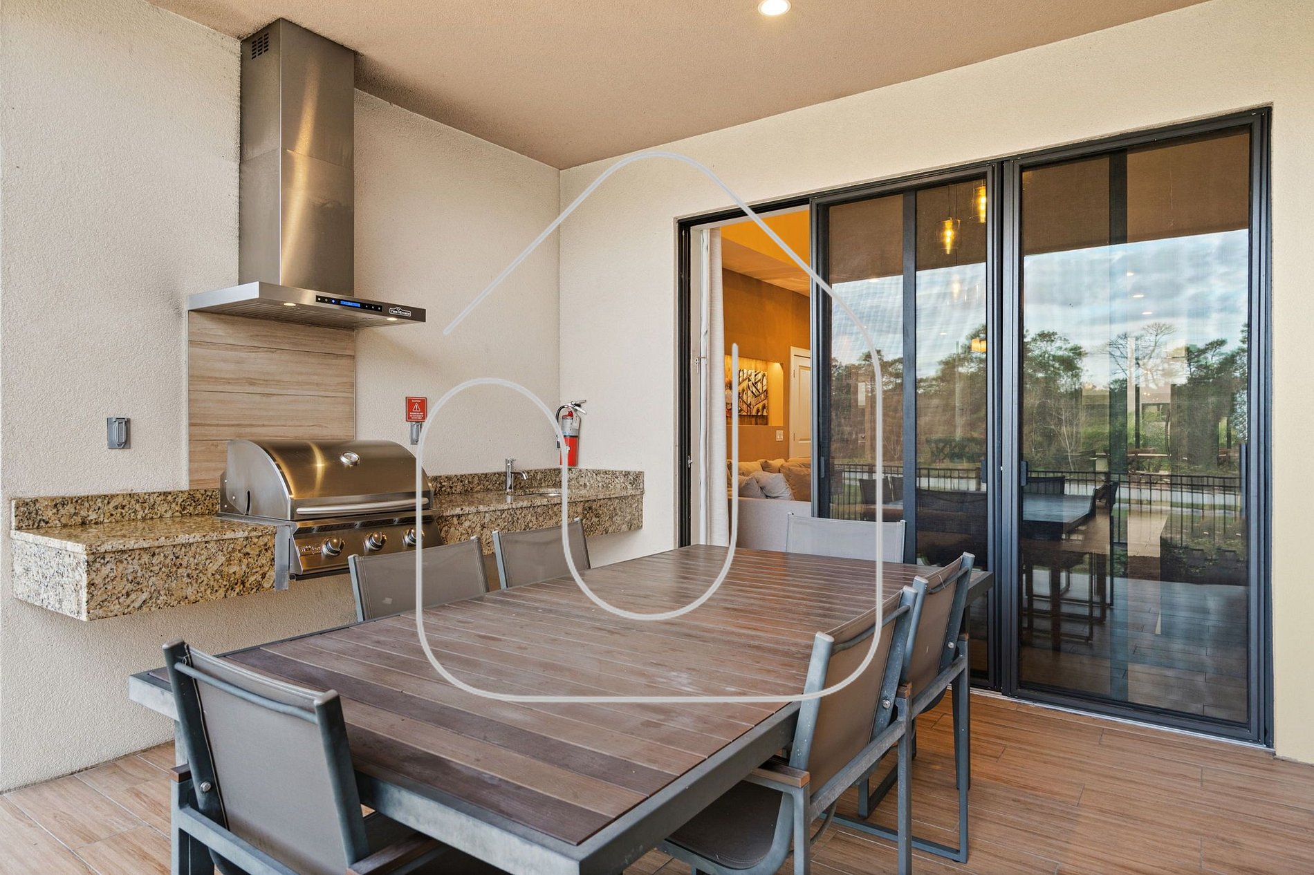 Aprimore sua experiência gastronômica com a churrasqueira a gás, perfeita para refeições ao ar livre na elegante mesa externa. O pátio privativo proporciona um ambiente sereno para o café da manhã ou relaxamento à noite.