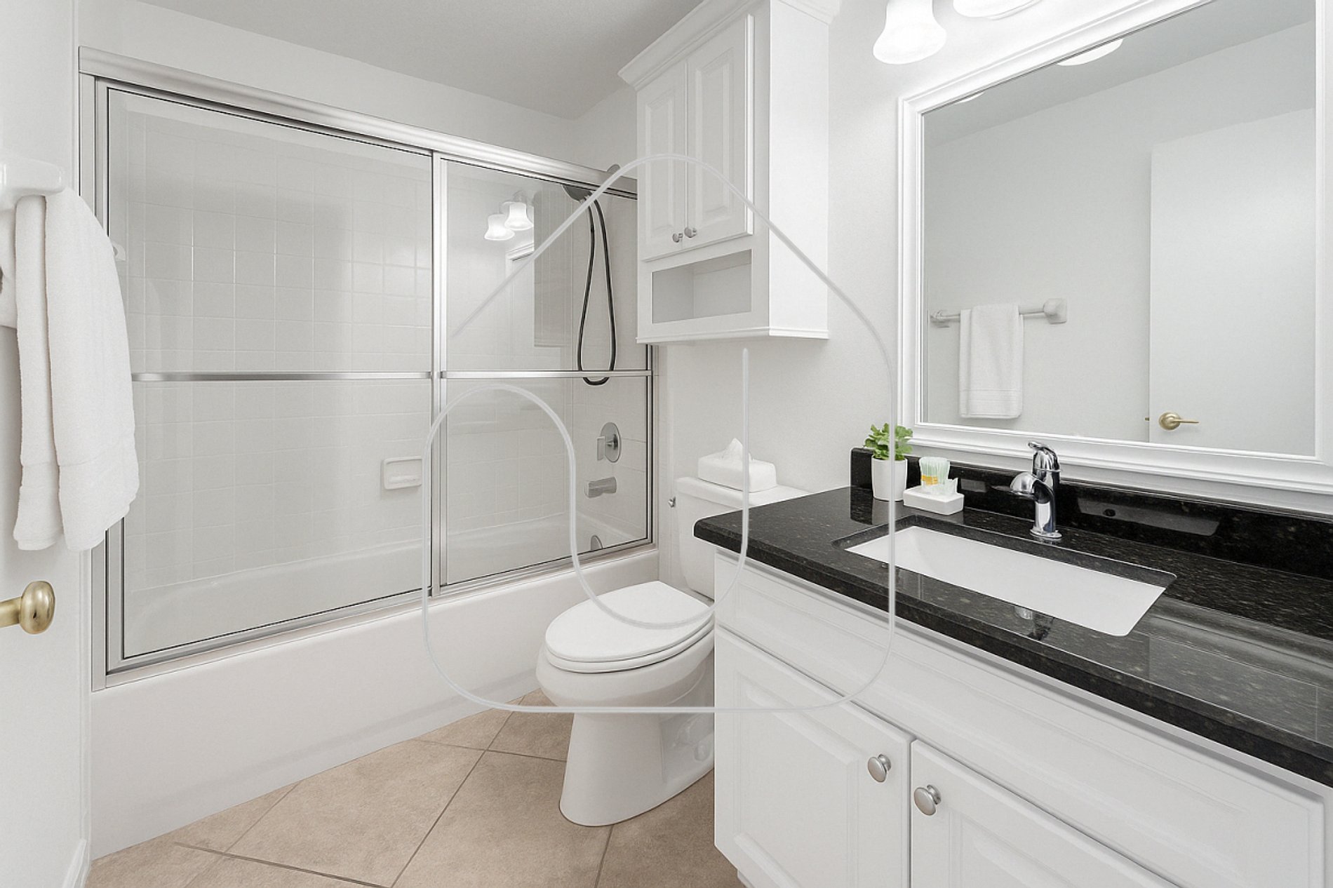 Banheiro completo entre os quartos 2 e 3.