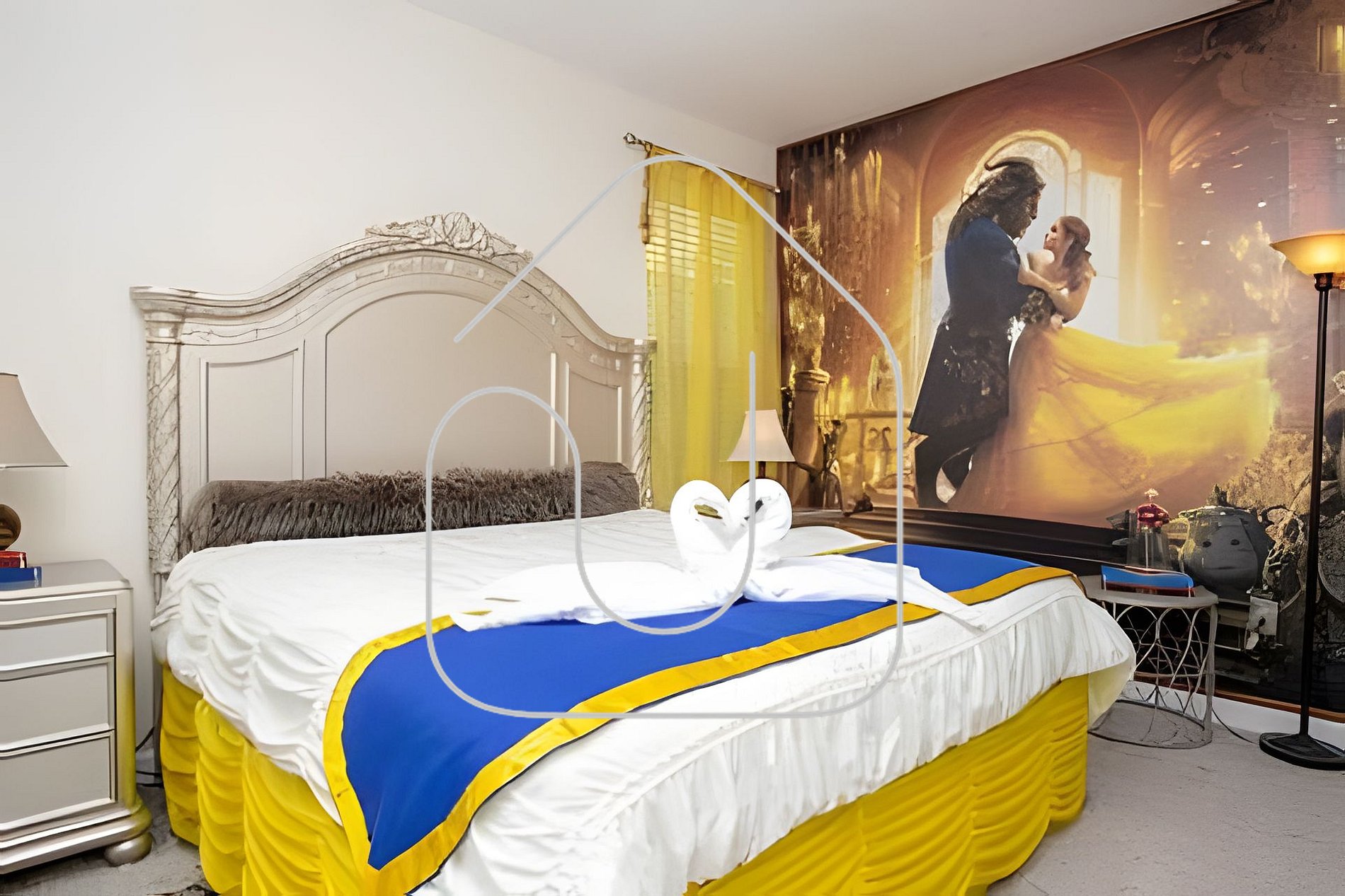 Quarto A Bela e a Fera: cama king, Smart TV, banheiro compartilhado.