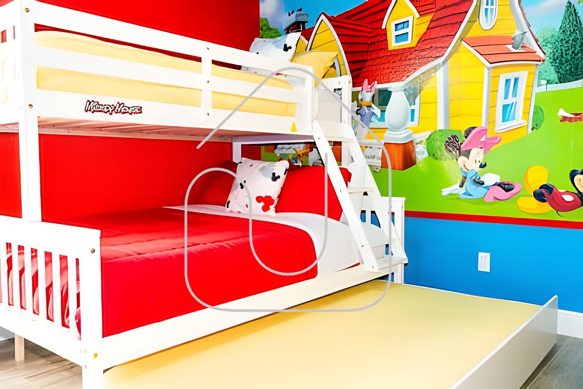 - Quarto Mickey #6: Beliche Full/Twin + Cama Auxiliar (Trundle)