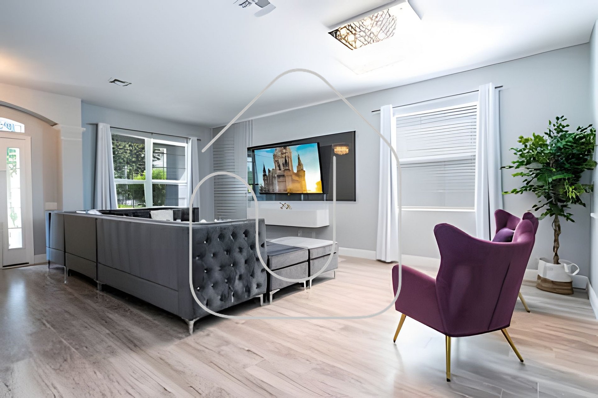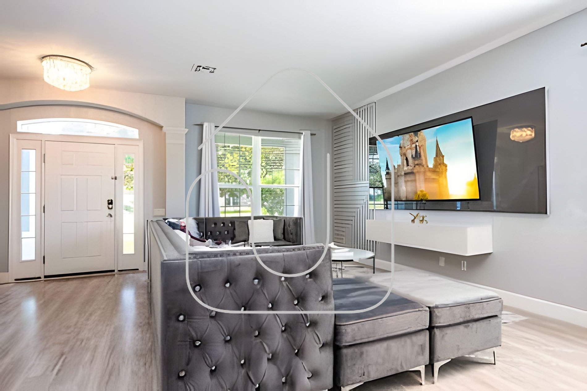 Entre em um espaço onde elegância e conforto se encontram. A ampla sala de estar oferece sofás macios e uma Smart TV de 75”, perfeita para reunir a família, planejar as aventuras na Disney ou relaxar assistindo a seus programas favoritos depois de um dia nos parques.