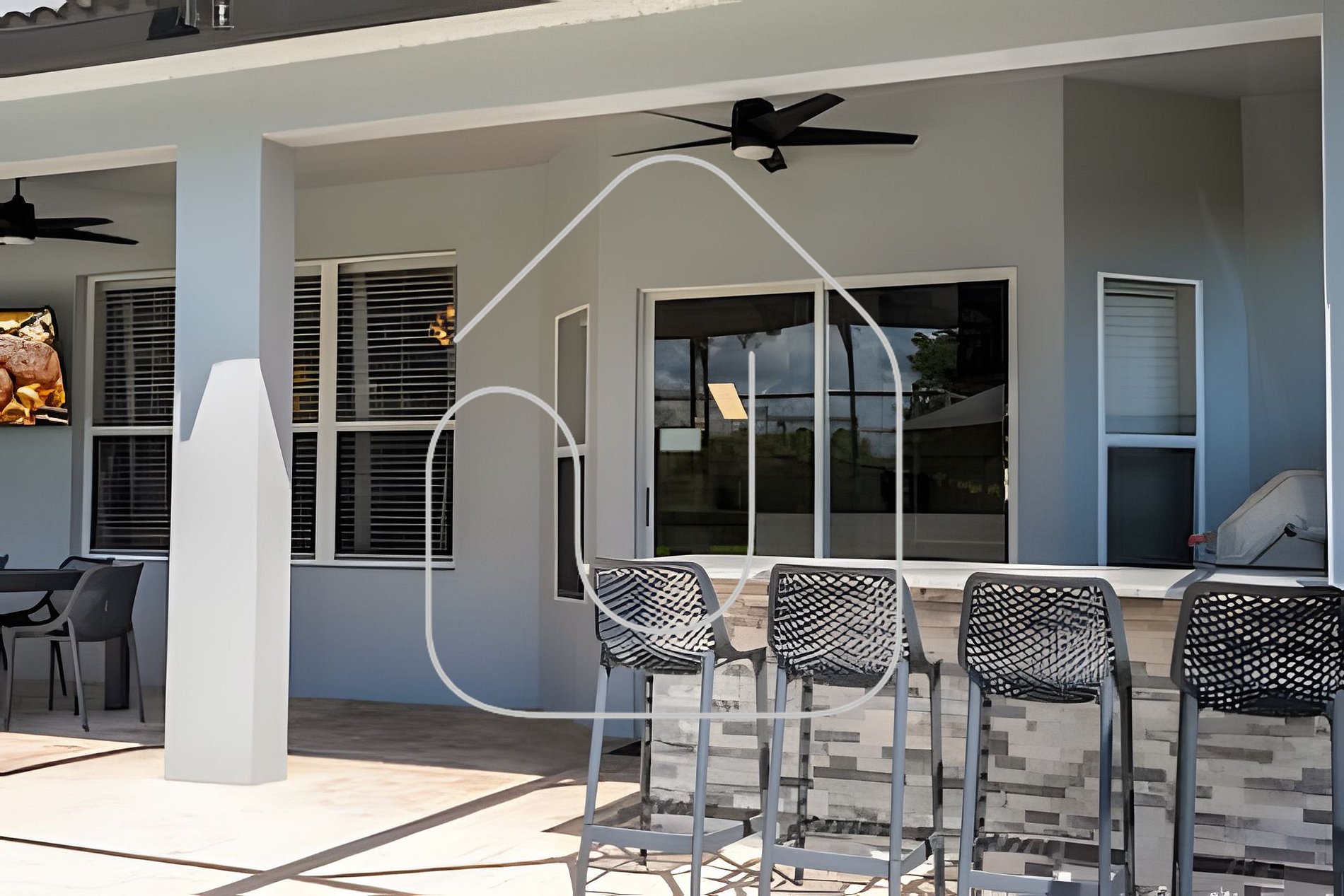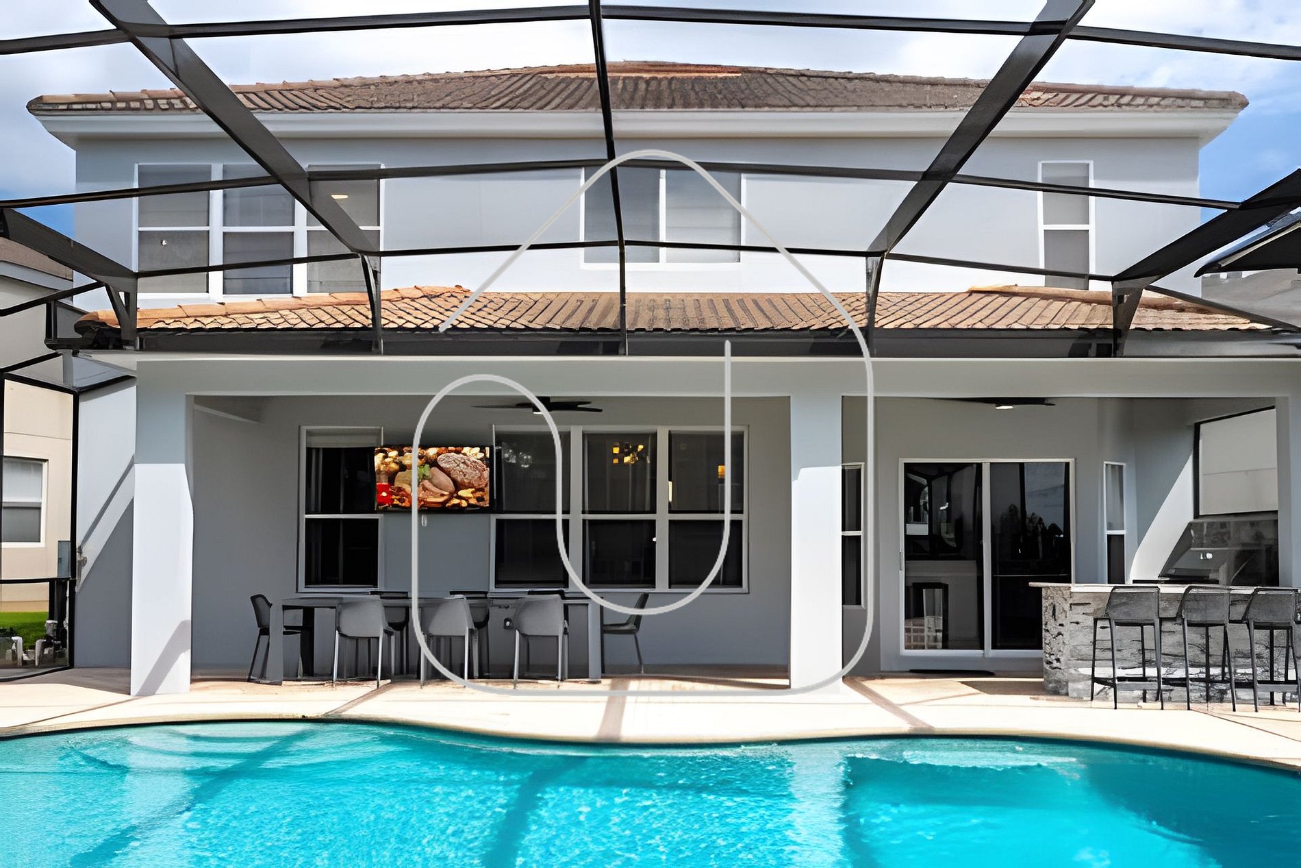 Saia para o seu refúgio particular e aproveite o sol da Flórida no amplo pátio com piscina privativa aquecida. Espreguiçadeiras e sofás externos garantem o conforto ideal para relaxar. Desfrute de refeições ao ar livre na mesa para 8 pessoas e aproveite ao máximo a Summer Kitchen, equipada com churrasqueira a gás e frigobar. Sob a área coberta há também uma Smart TV de 65”, tornando este o lugar perfeito para confraternizações ao ar livre.