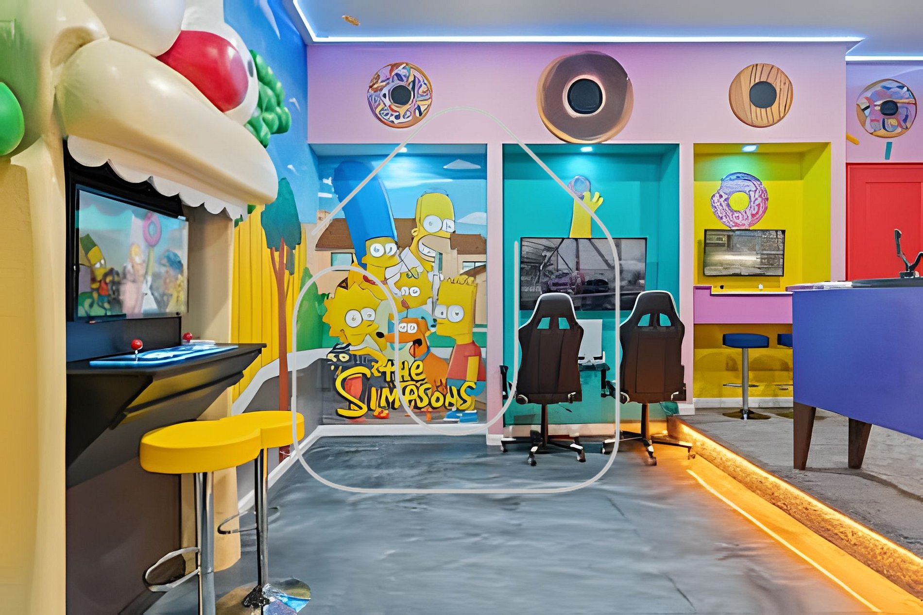 Relaxe na piscina privativa com spa integrado, com espreguiçadeiras e área externa para refeições — o lugar ideal para curtir o sol da Flórida. A diversão continua na sala de jogos dos Simpsons, perfeita para todas as idades.