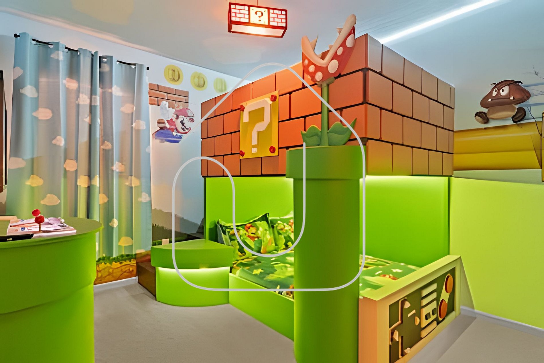 • Quarto 5 (Super Mario) – Beliche (Casal/Casal) | Banheiro privativo
