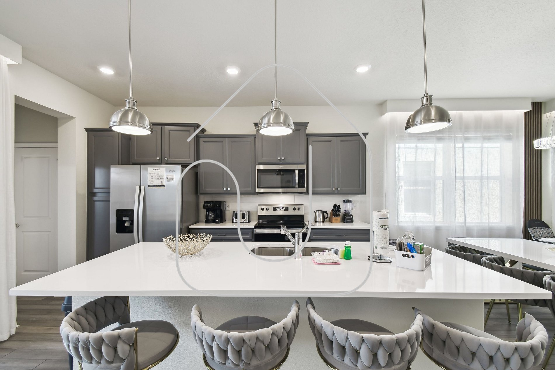 A casa fica a apenas 20 minutos dos parques da Disney, com fácil acesso a outras atrações de Orlando, como Universal Studios e SeaWorld. Supermercados, lojas e restaurantes estão a poucos minutos de distância, garantindo comodidade para sua estadia.