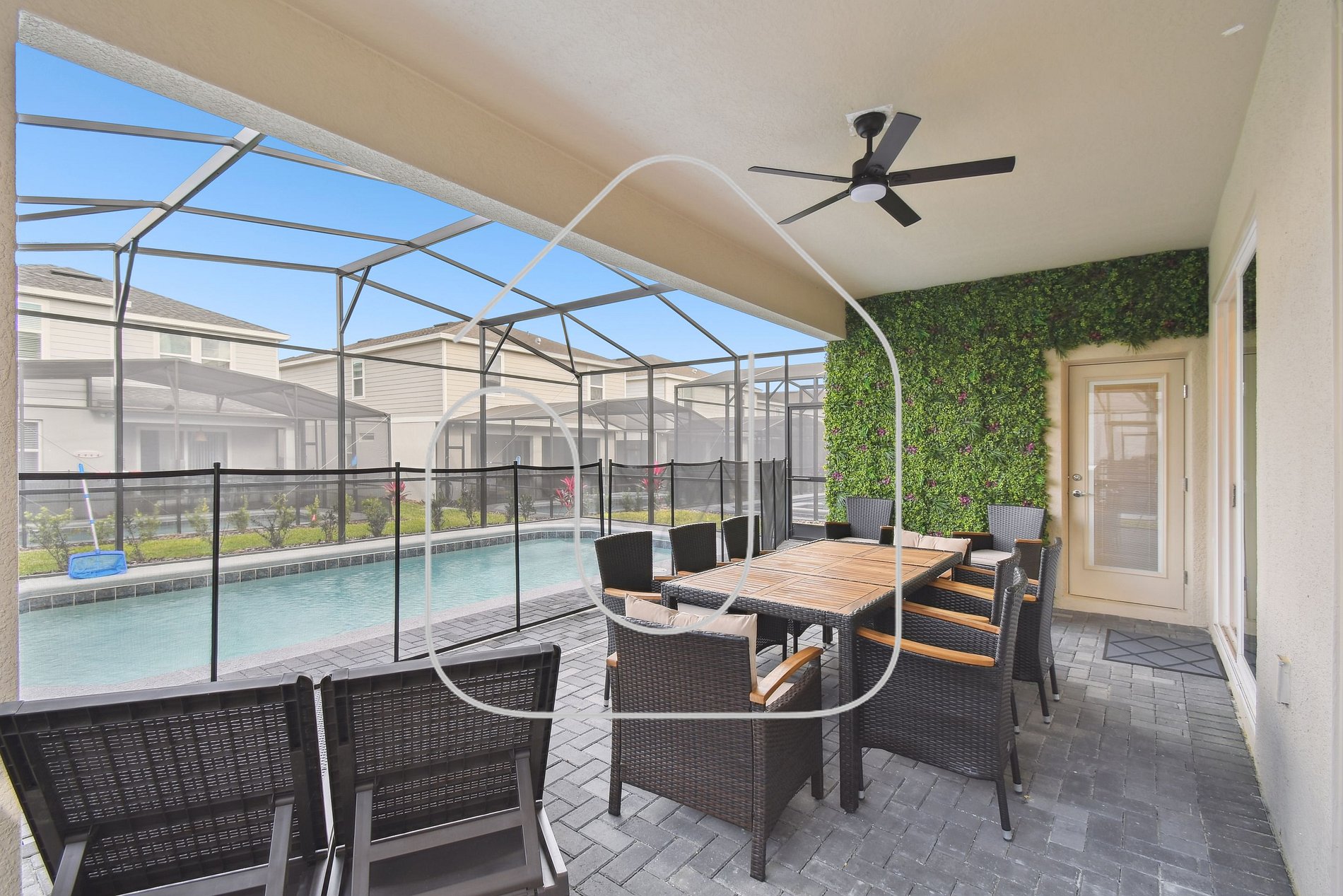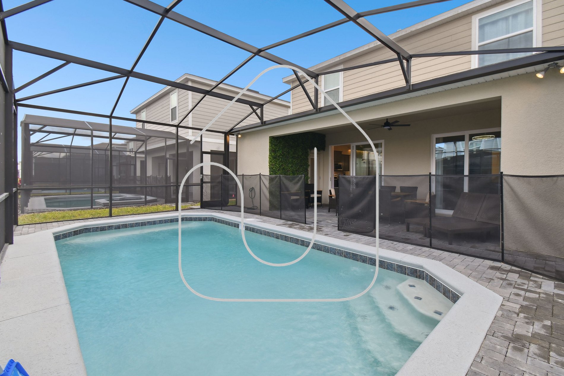 Aproveite a piscina aquecida privativa, perfeita para relaxar sob o sol da Flórida. Também há a opção de aluguel de churrasqueira para refeições ao ar livre.