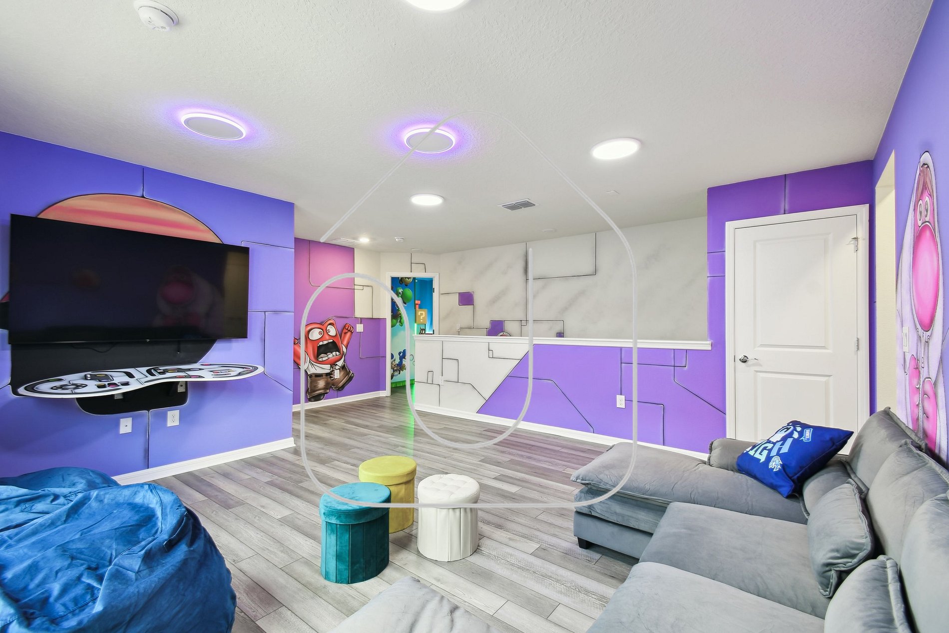 We had an amazing family staycation here for my son’s birthday! The house was perfect for both kids and adults. The game room kept everyone entertained, and we loved having an extra living room upstairs, which we turned into a movie room for the kids. The location was also very convenient—just under 10 miles from Disney, making it about a 20–25 minute drive depending on traffic.