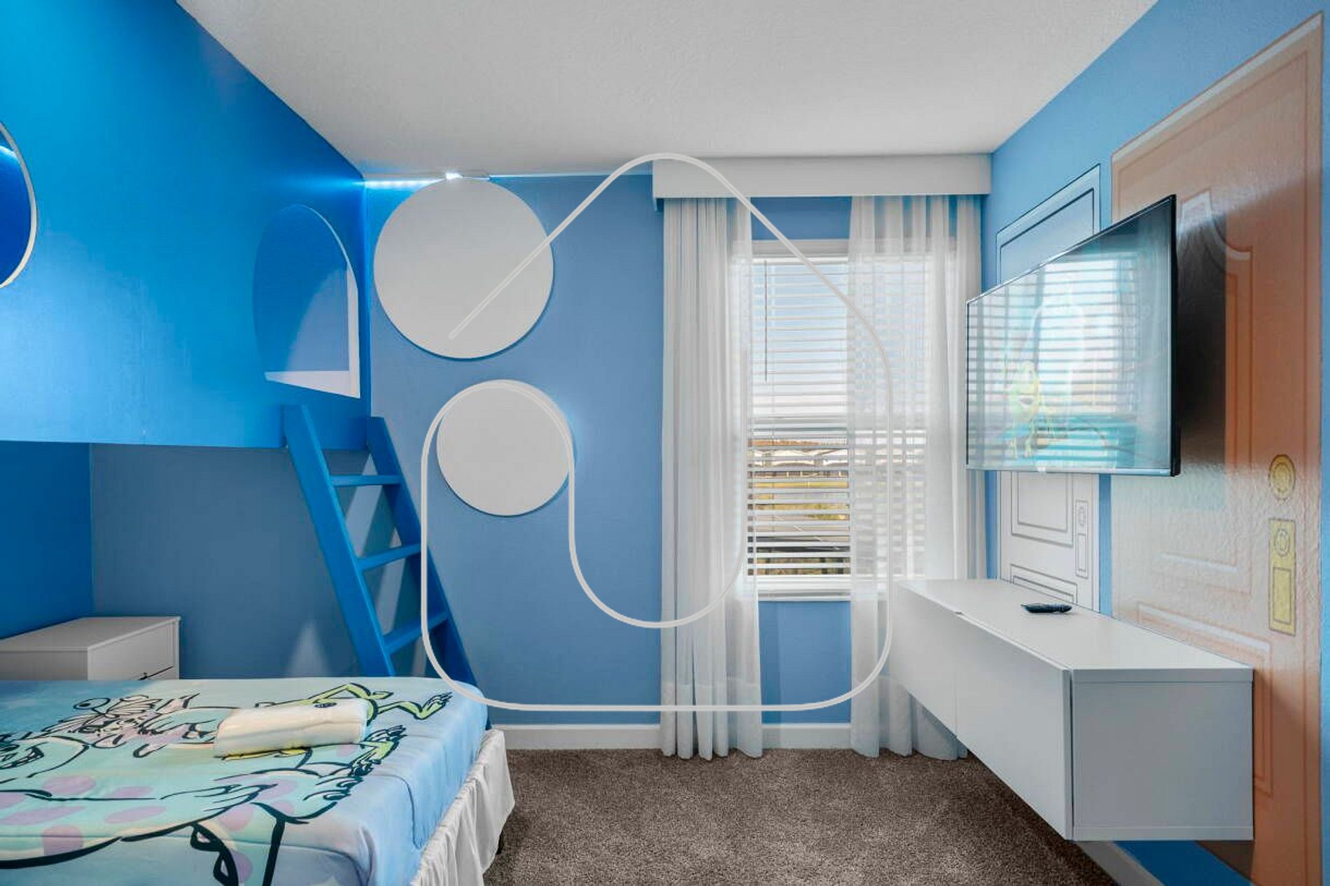 • Quarto 8: 1 Cama de Casal / 1 Cama de Solteiro - acomoda 3 pessoas (tema Moana)