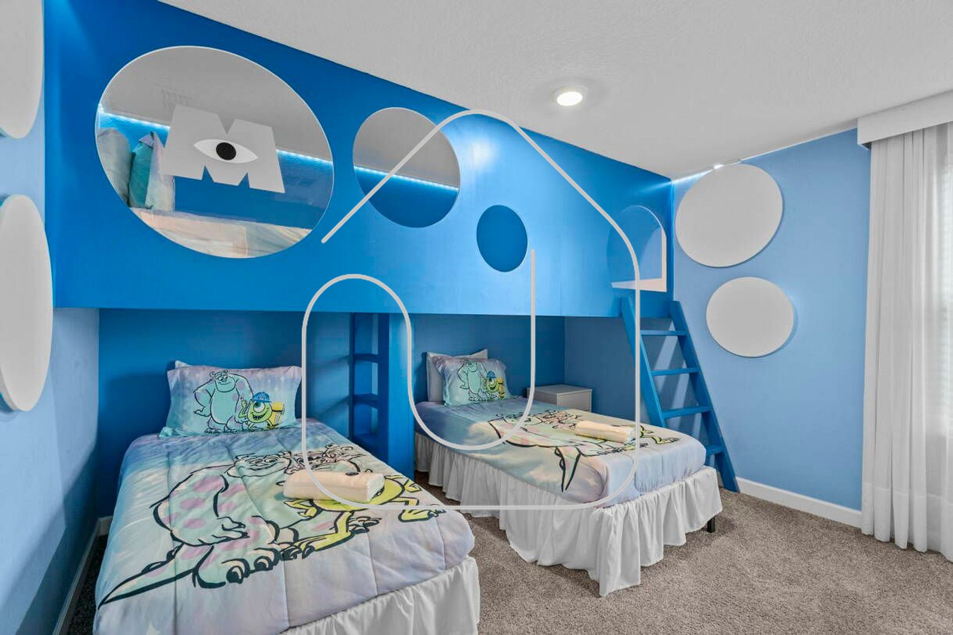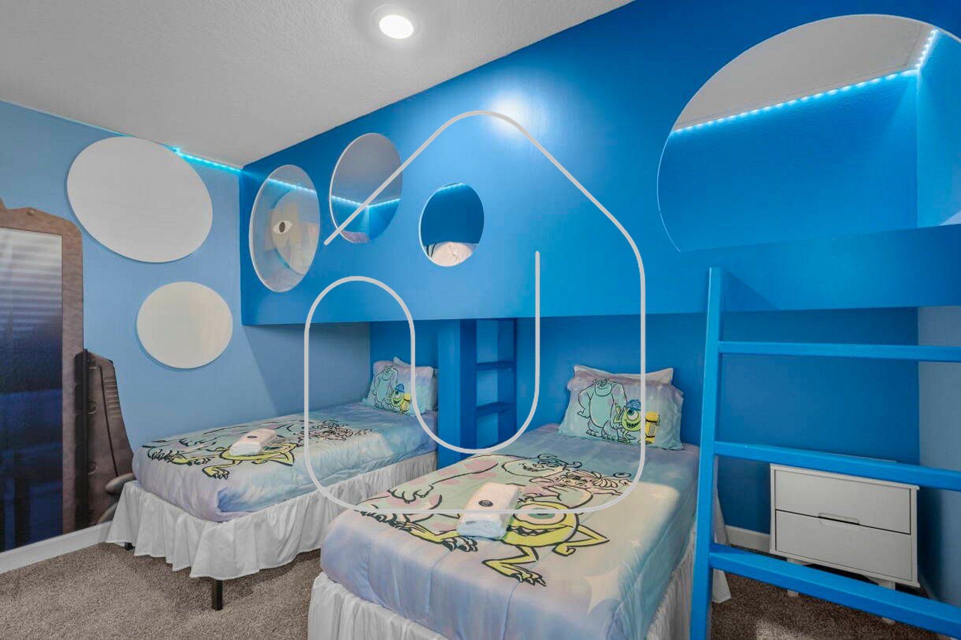 • Quarto 5: 3 Camas de Solteiro - acomoda 3 pessoas - (tema Monstros S.A.)
