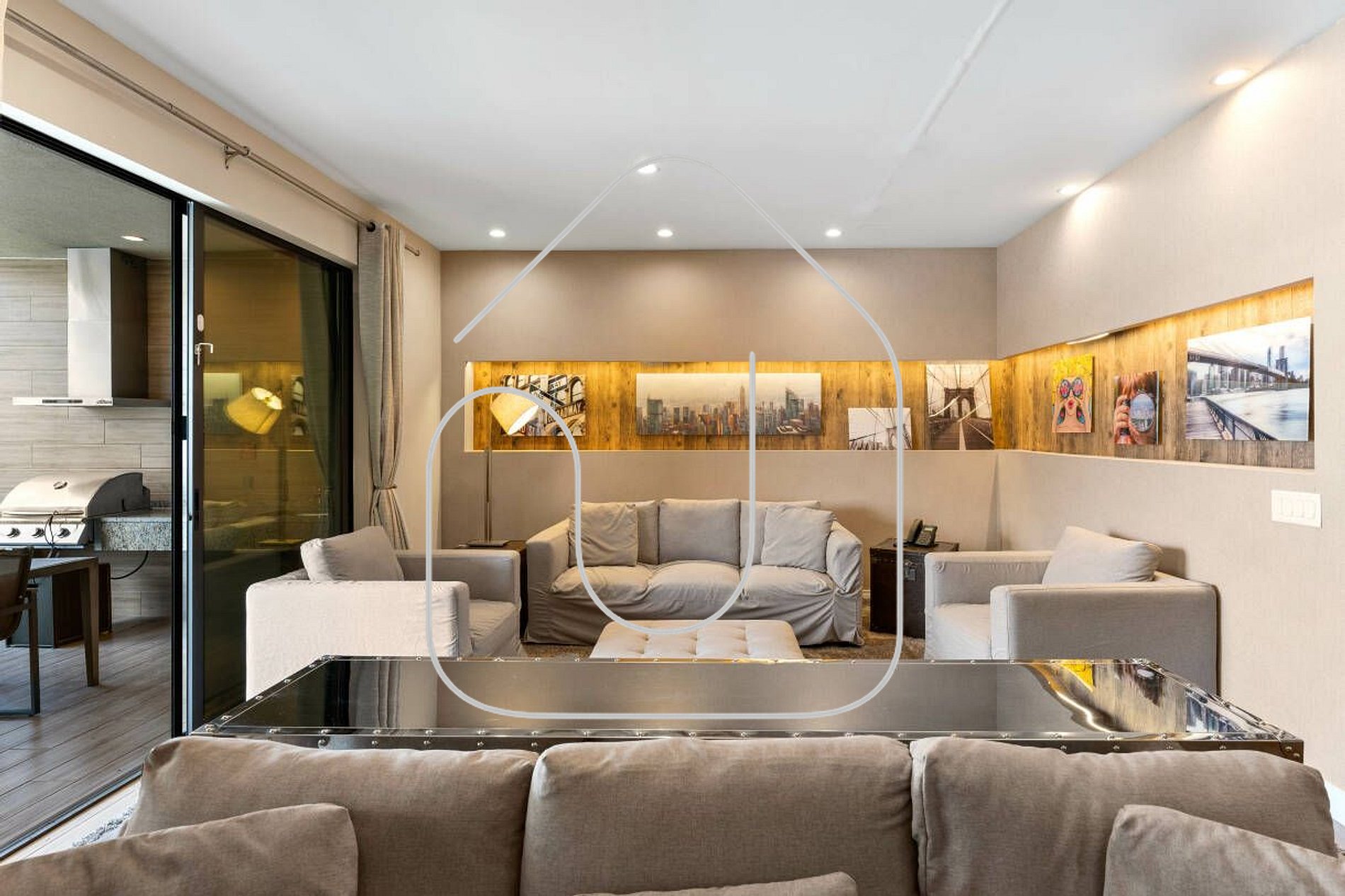 A propriedade possui decoração moderna e contemporânea, incluindo tetos altos na área de estar que aumentam a sensação de bem-estar, proporcionam luz ampla e garantem conforto.