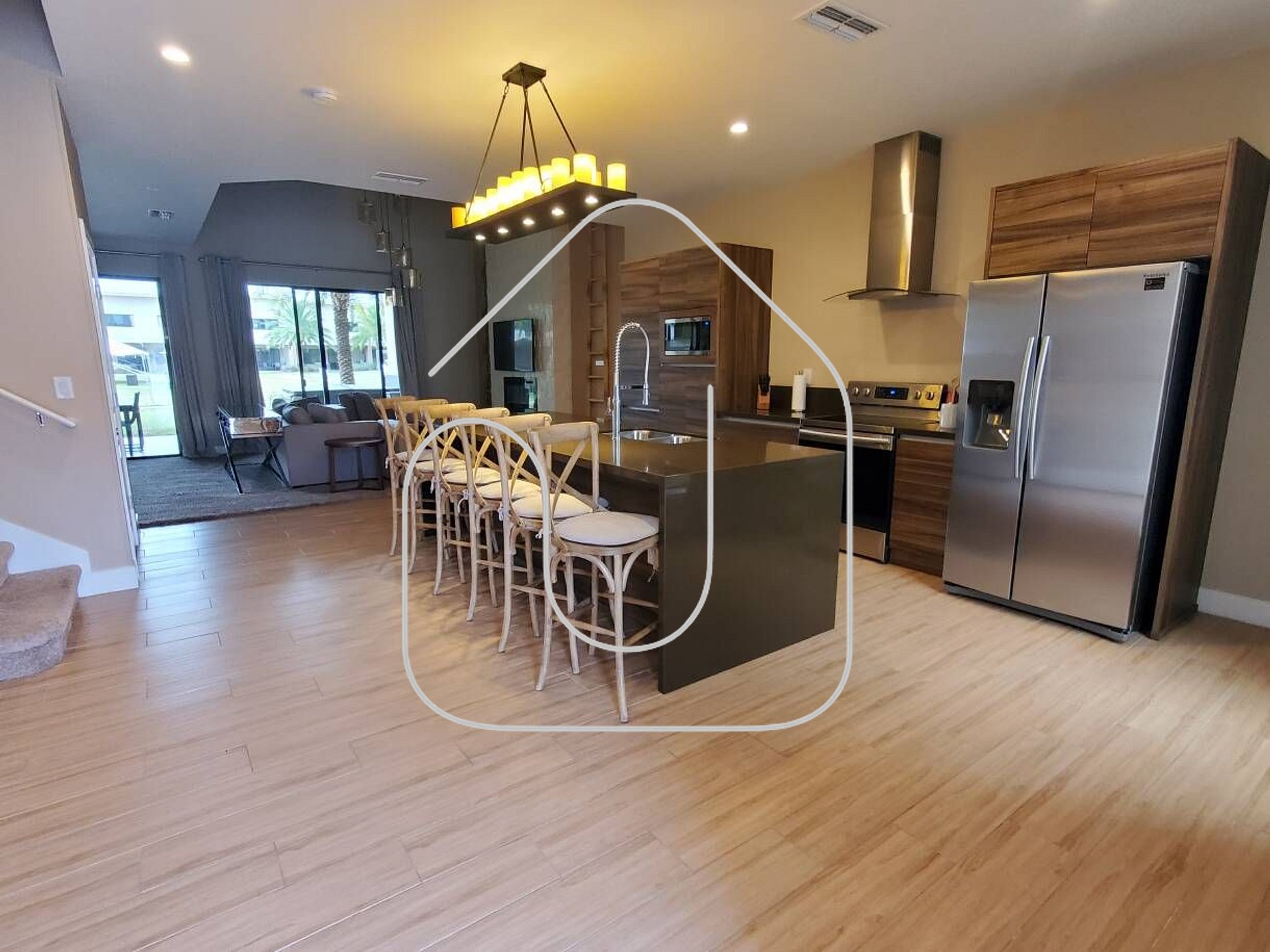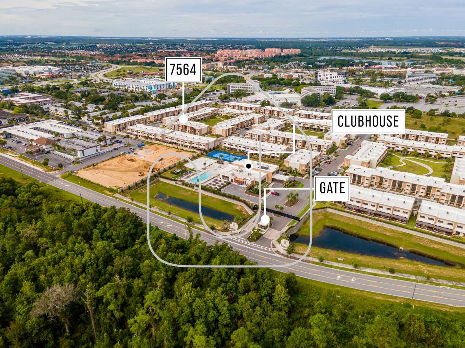 Magic Village Views: Condomínio novo com casas de arquitetura moderna, ambientes com pé-direito duplo e linda decoração com móveis contemporâneos. O primeiro andar possui sala de estar ampla, cozinha completa, lavabo e grande terraço com churrasqueira e jacuzzi. O segundo andar conta com 3 suítes, todas com banheiros privativos e closets. Estacionamento para 2 carros em frente à casa. Condomínio bem localizado, próximo à US-192, com cinemas, restaurantes, parques aquáticos, centros de compras, a 6 minutos dos parques da Disney e a 3 minutos de farmácias e mercados (Walmart, Publix). Todos os mencionados ficam a menos de 10 minutos da propriedade. (7564 Brl dr)