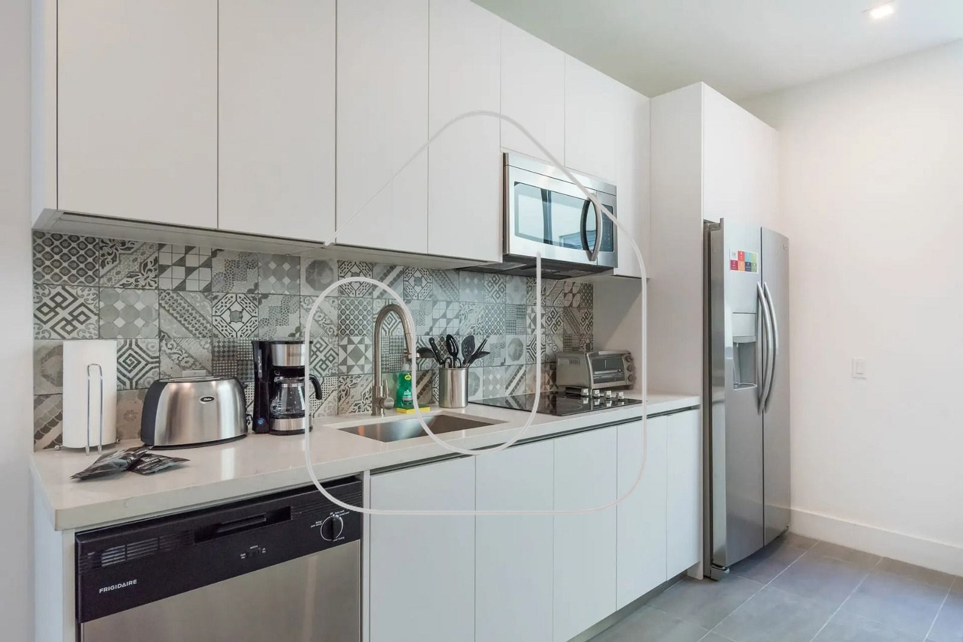 Ambiente claro e integrado que une funcionalidade e sofisticação. A sala conta com sofá-cama e smart TV, e a varanda é perfeita para relaxar e sentir o clima vibrante de Miami. A cozinha está equipada com tudo que você precisa para preparar refeições ou cafés rápidos antes de explorar a cidade.