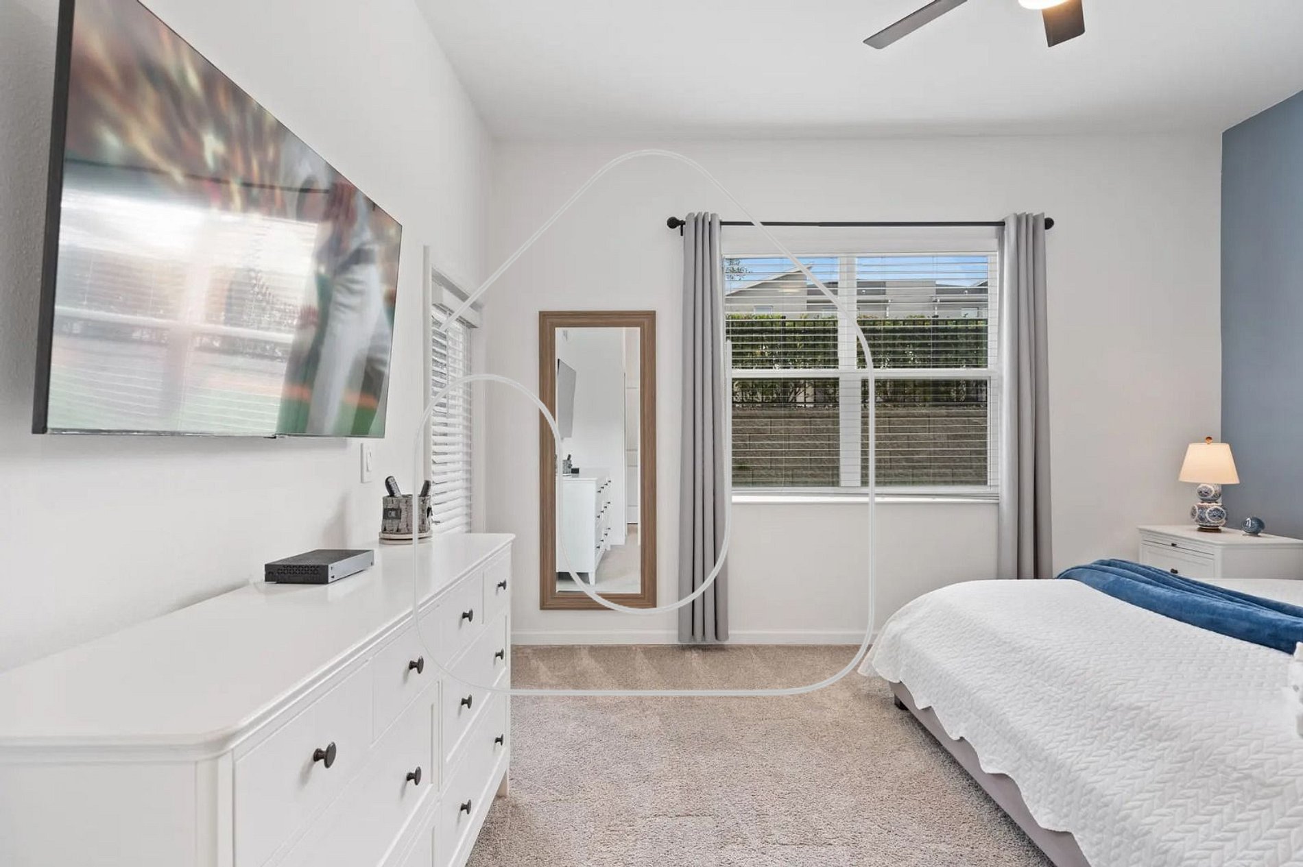 Viva dias de conforto neste moderno apartamento de 2 quartos e 2 banheiros em Champions Gate, perfeito para até 6 hóspedes. Relaxe na sala de estar com sofá-cama, prepare refeições na cozinha completa e aproveite a varanda privativa. A suíte principal possui cama king, enquanto o segundo quarto conta com um divertido beliche (cama de casal + solteiro). Uma sala de jogos garante diversão extra. Aproveite piscinas, rio lento, academia e mais—tudo a 20 minutos da Disney!